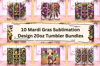 10 Mardi Gras Sublimation Design 20oz Tumbler Bundles - Perfect for Carnival Tumblers - Instant Digital Download - 300 DPI PNG