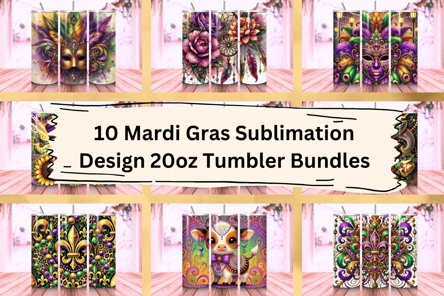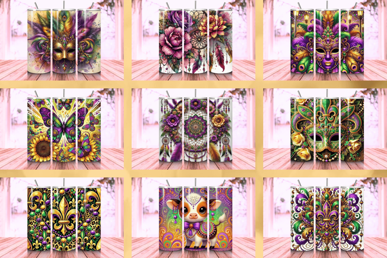 Add versatility and festive charm to your Mardi Gras collection with this 10-design tumbler bundle, perfect for crafting tumblers that capture the vibrant spirit of Carnival!