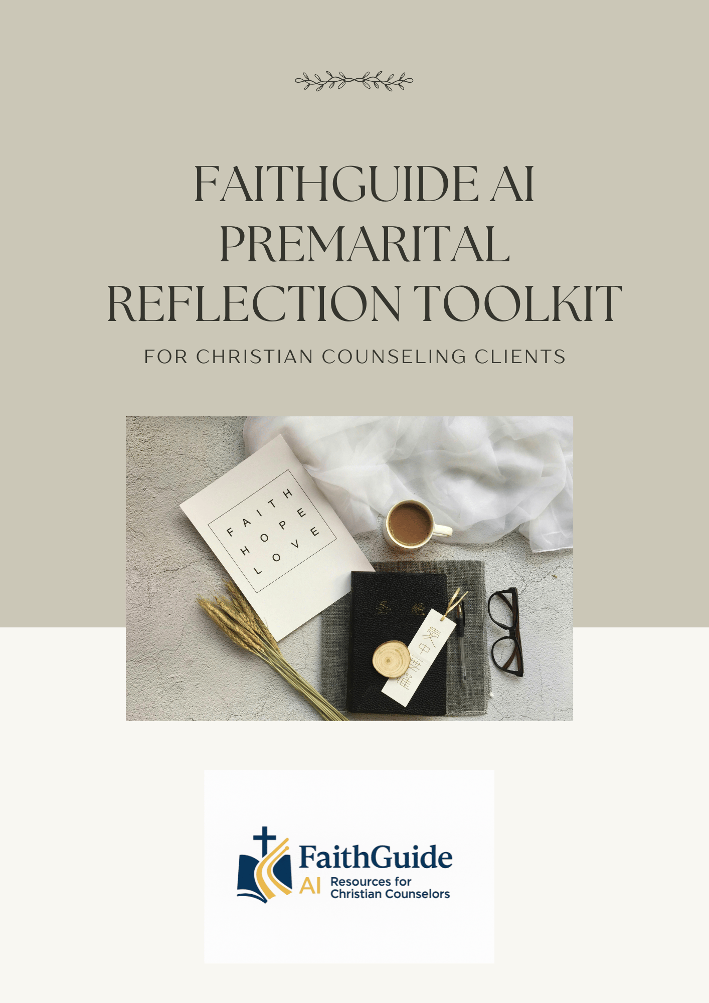 The FaithGuide Premarital AI Exploration Workbook helps couples explore biblical principles, communication habits, and shared values—while using AI chat prompts to encourage personal insight between sessions.