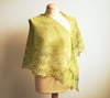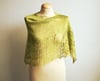 Olivijn is a crescent-shaped shawl worked from the top-down. Its stockinette body will let that special skein of fingering weight yarn shine, the lace edging adds a special touch of luxury.