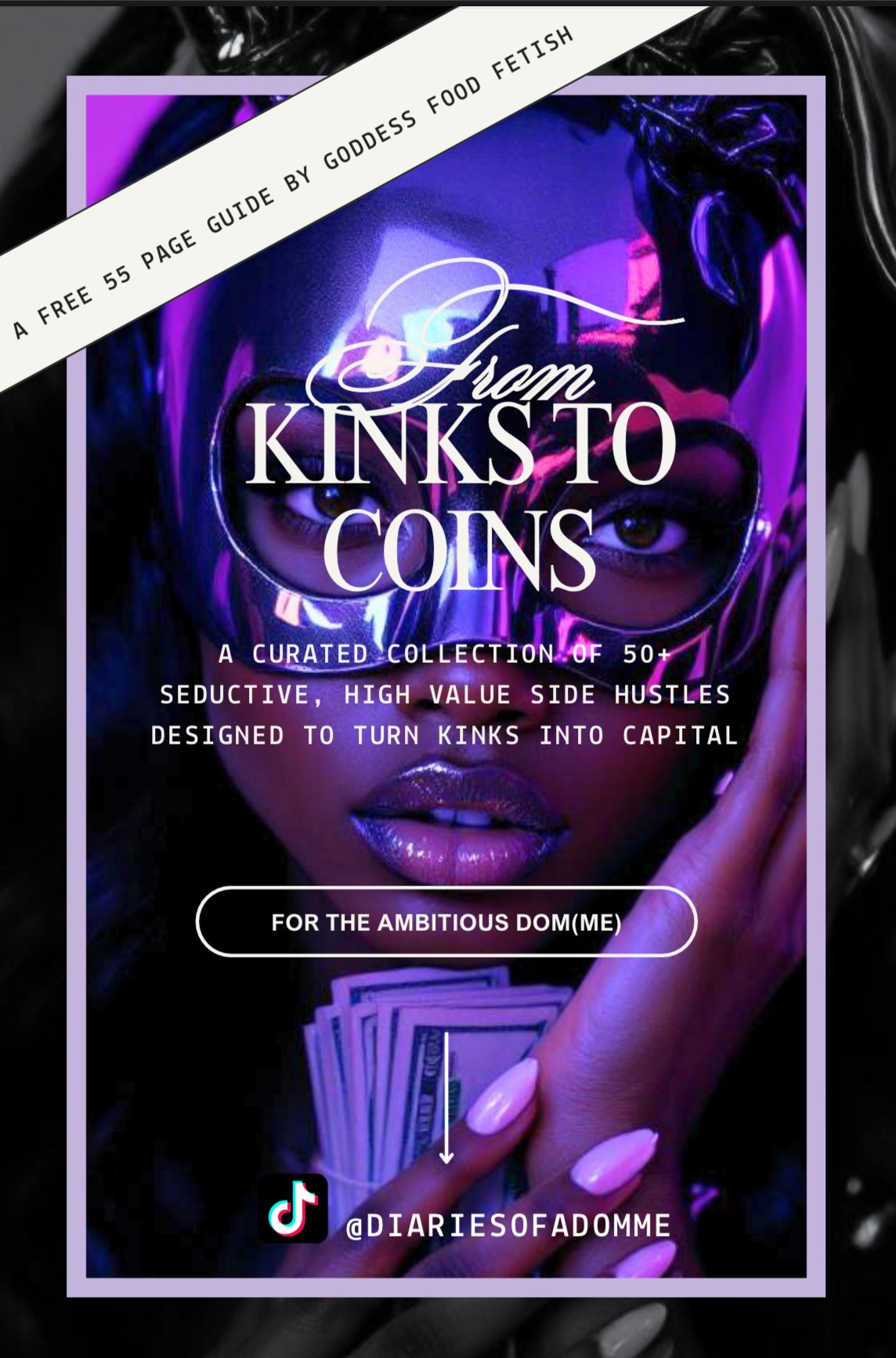 Inside, you’ll find over 50 powerful, profitable income ideas curated specifically for dom(me)s, digital seductresses, and kink aligned creators who are ready to turn their erotic energy into streams of income. Whether you’re brand new to findom(me), already running a faceless empire or expanding your domination business—this is your first taste of what’s truly possible.