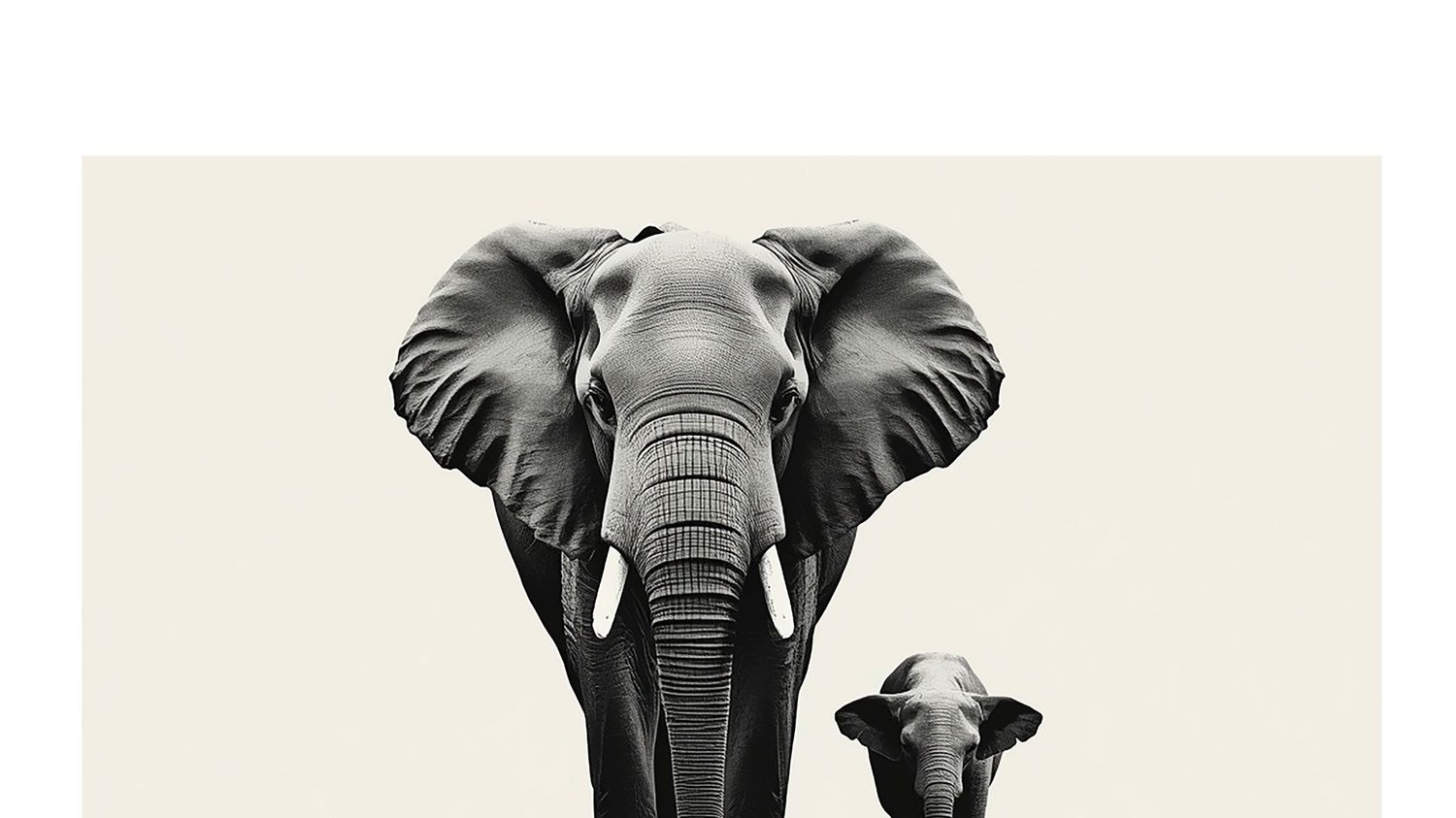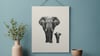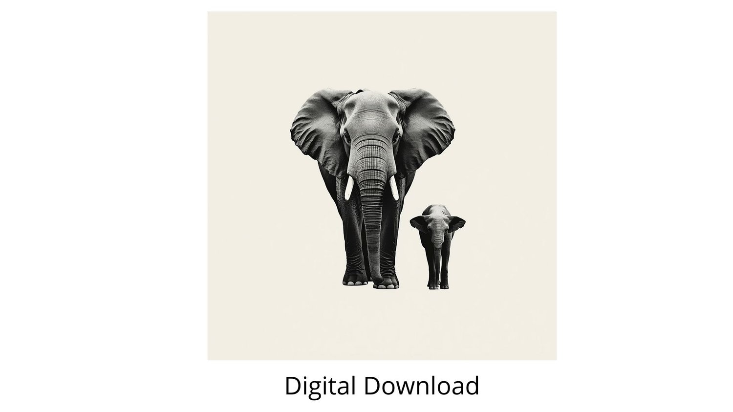 Black and white elephant with calf wall art printable, clean and timeless.
