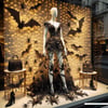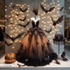 Description: A hauntingly beautiful masterpiece, this Halloween couture dress features delicate bats and intricate spider designs woven into a black lace silhouette. Paired with matching accessories—bat-winged stilettos and a spider-shaped headpiece—this ensemble exudes gothic glamour, perfect for those who dare to embrace the night.