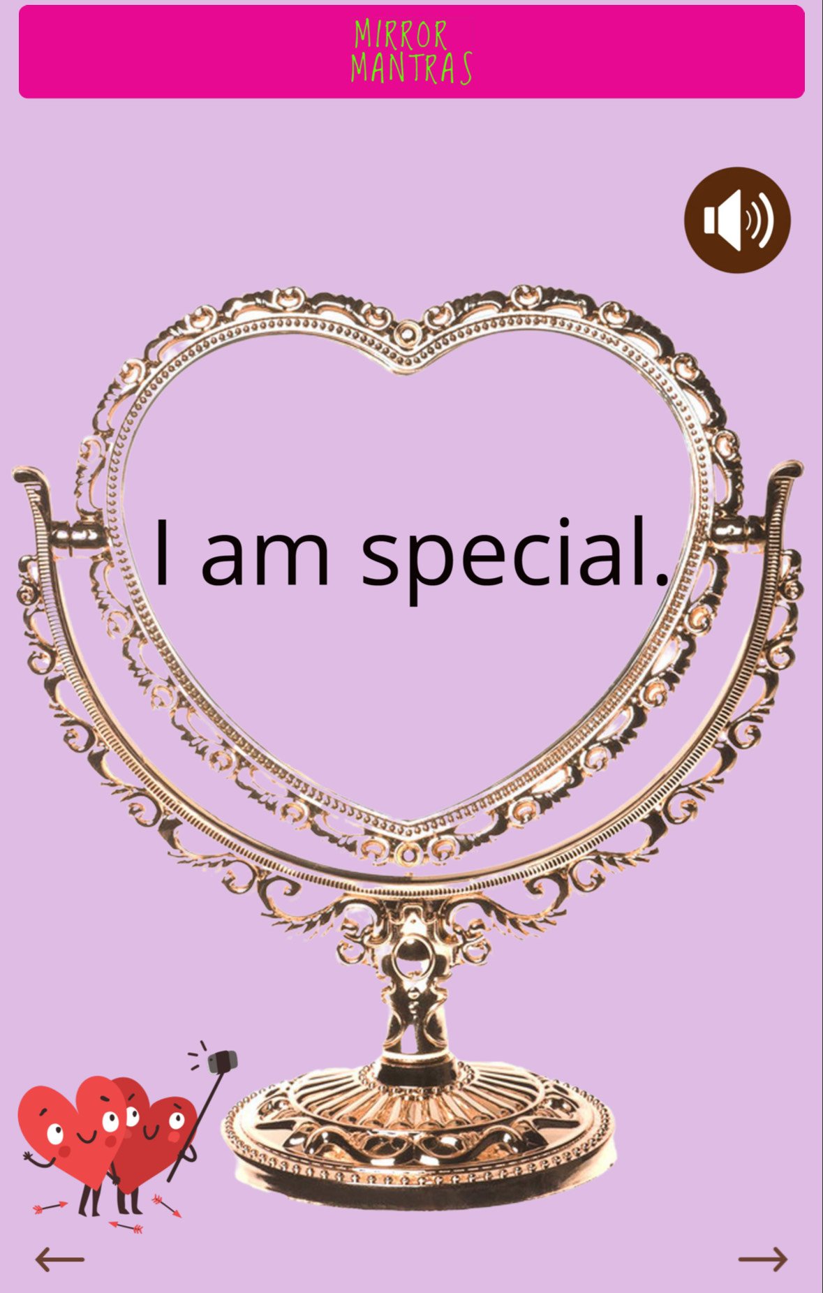 - Push-button audio for each mantra (hear it, feel it, repeat it)