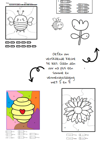 Met oulike bye karakters en bekoorlike lente-landskappe, word elke kleurbladsy 'n avontuur op sigself, wat kinders se verbeelding en entoesiasme vir leer vasvang. Of dit nou gaan om blomblare tel, eenvoudige wiskundige vergelykings op te los, of die wonderwerke van vermenigvuldiging te ontdek, "Klouter in Leer" bied oneindige geleenthede vir vaardigheidsbou en kreatiwiteit.