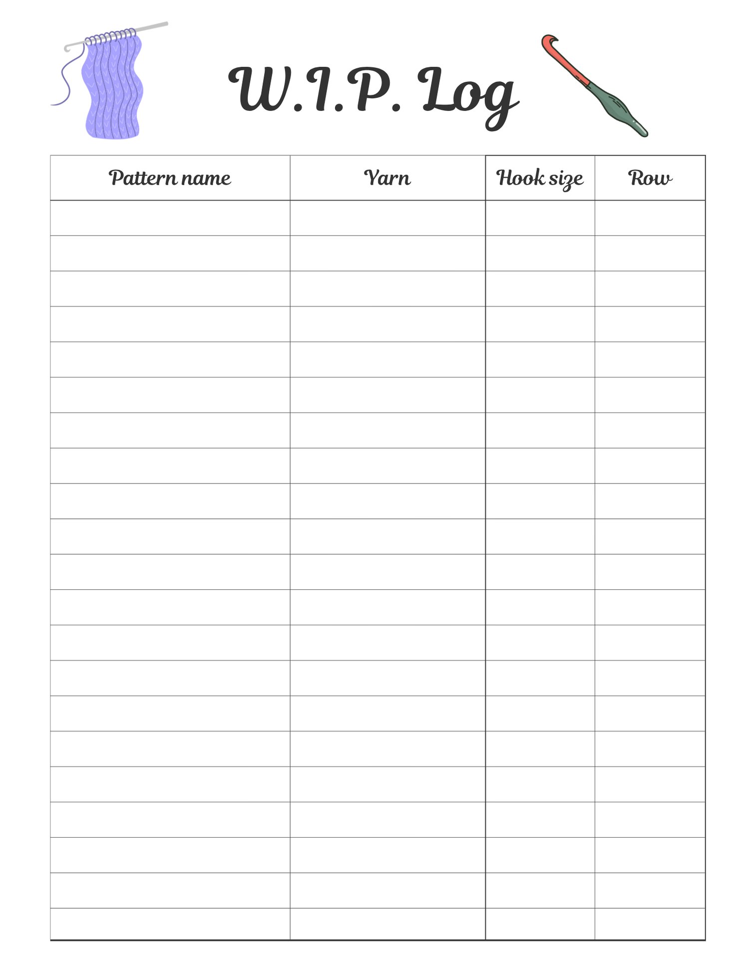 Creative projects turning into unfinished objects, this WIP log is the bridge between start of project excitement and crossing the finished line. Unfinished work gets forgotten, you get WIP amnesia, forgetting things like hook you used or where you left off. This log can eliminate that and you can confidently pick up where you left off. This log includes a way for you to track the source of the pattern, keep track of your rows, the yarn you used and the hook size. Turn half-finished into a streamlined gallery of progress.