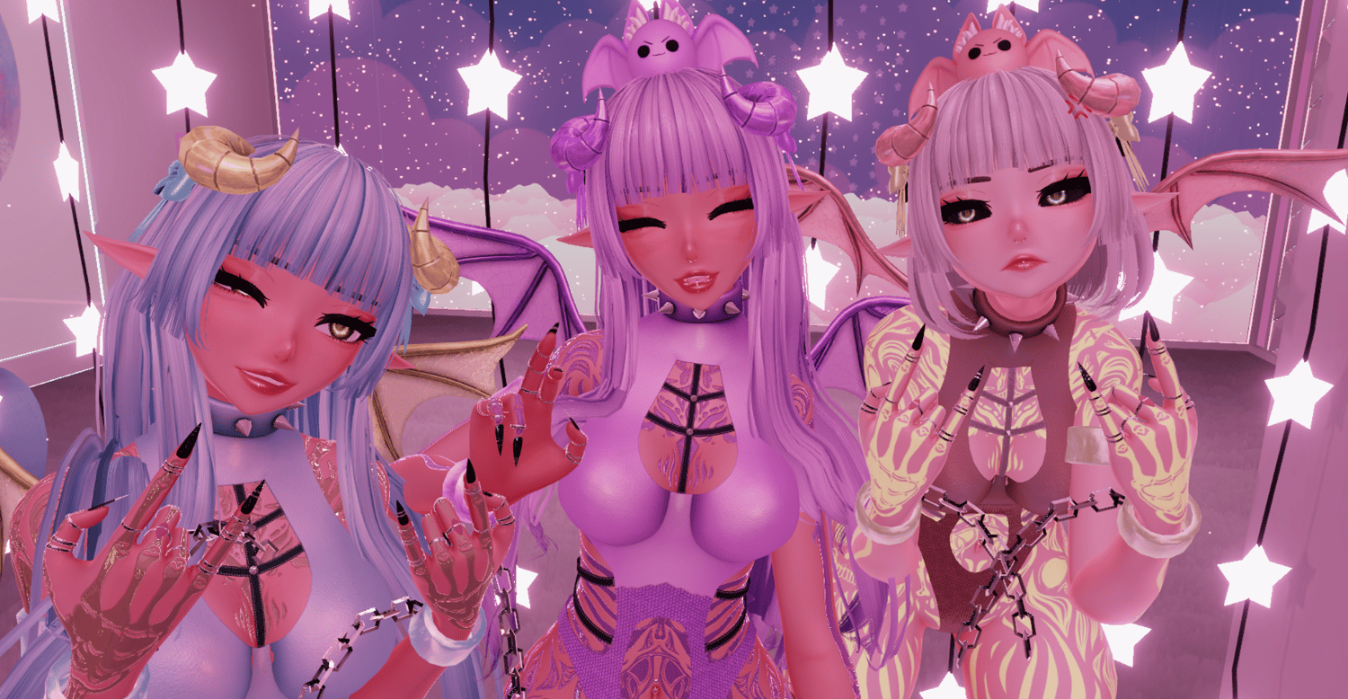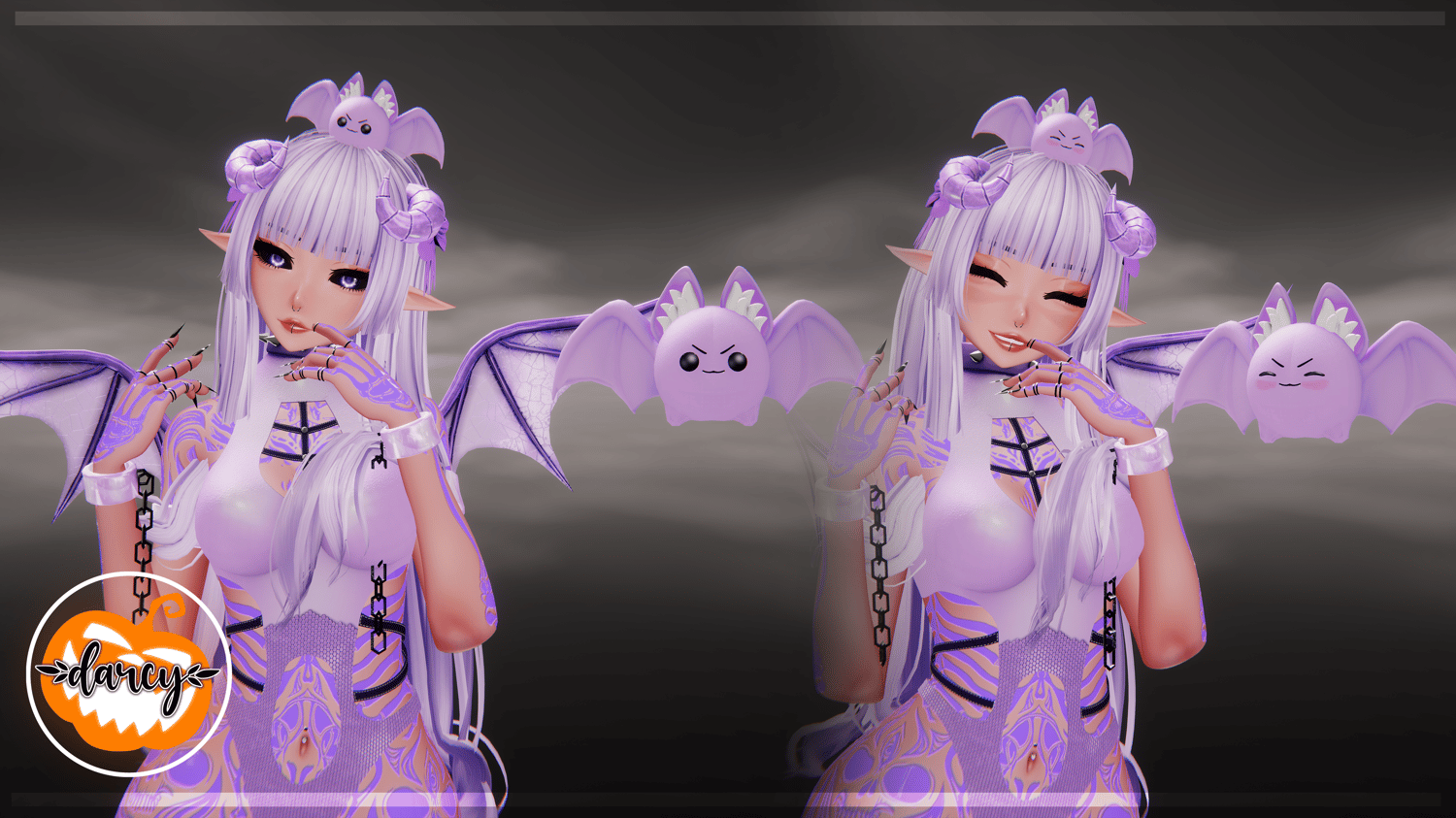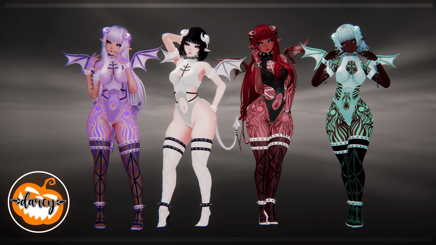 - Bodysuit, Bracelets/bows, Demon stuff & wings