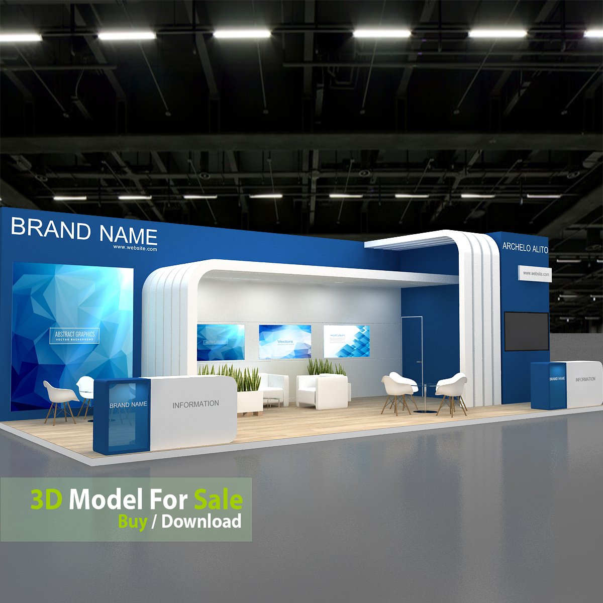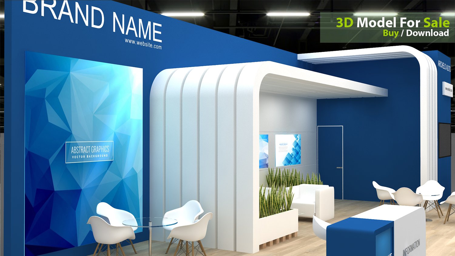 include design all necessary area in Exhibition and Booth Such as Vip and Storage and Counters and also Stand for productsFormat: 3DsMax (all version from 2016) / FBX /OBJ/