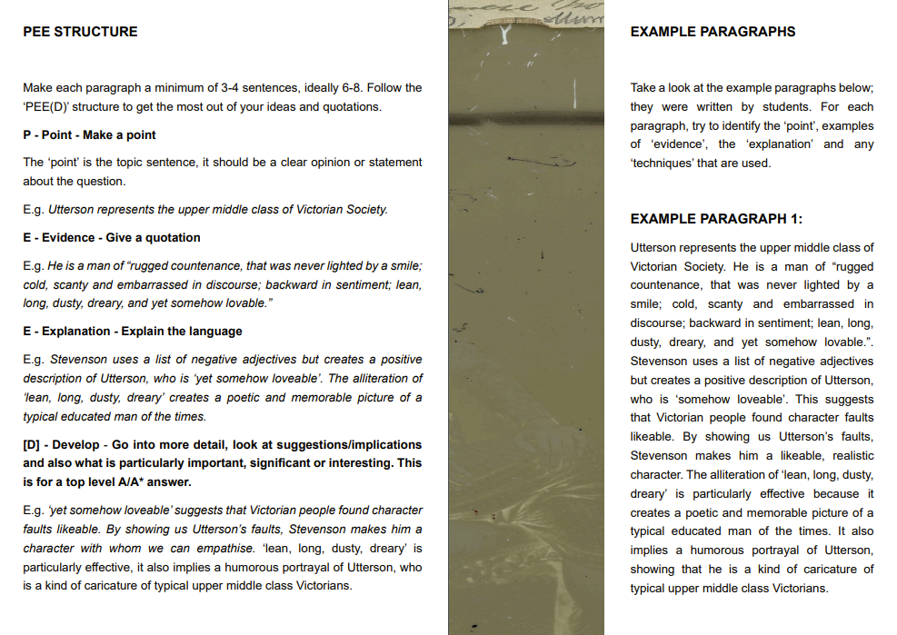 Jekyll and Hyde: PEE Paragraph Practise - Study Guide