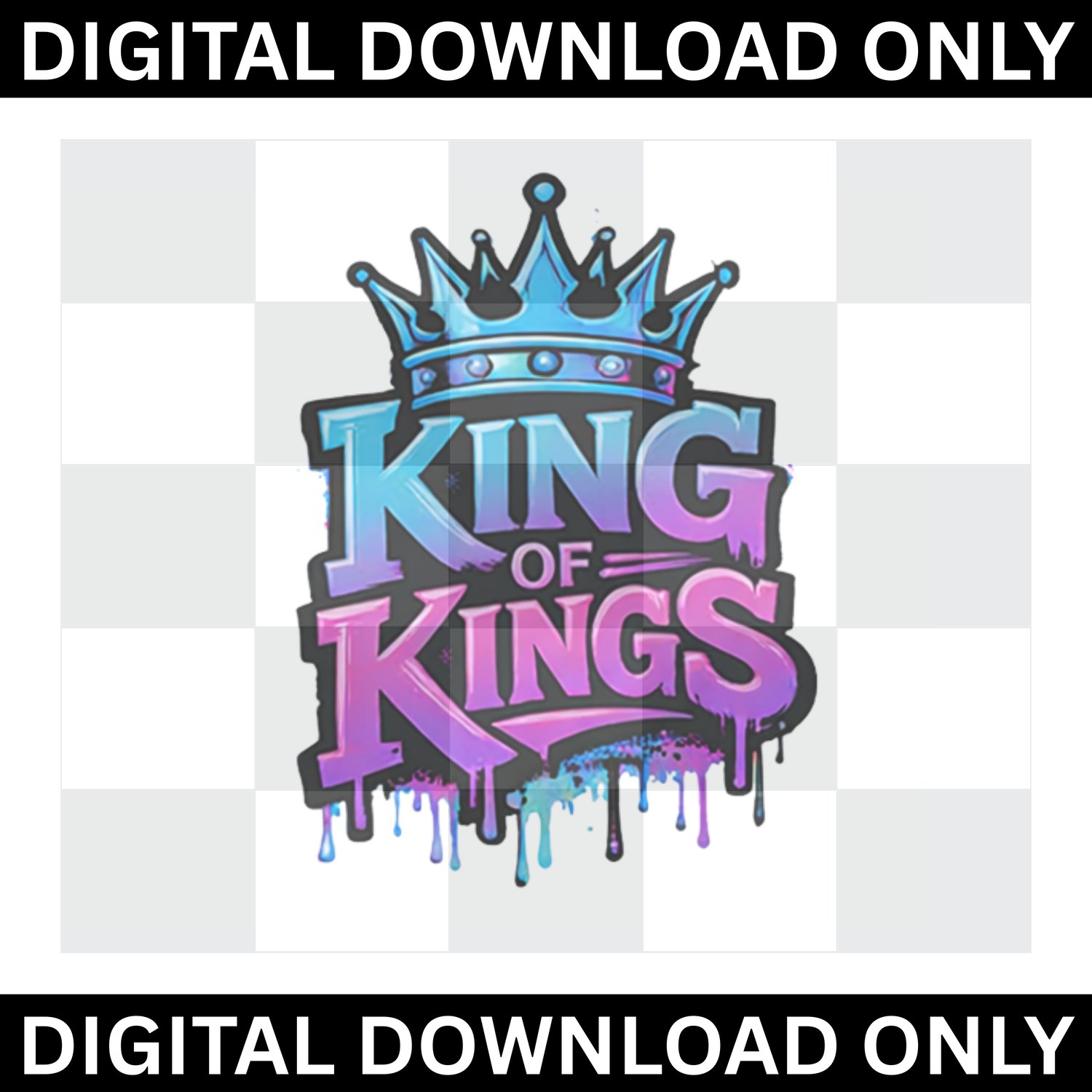 Celebrate bold faith and royalty with this vibrant “King of Kings” PNG design! Featuring a striking dripping graffiti-style