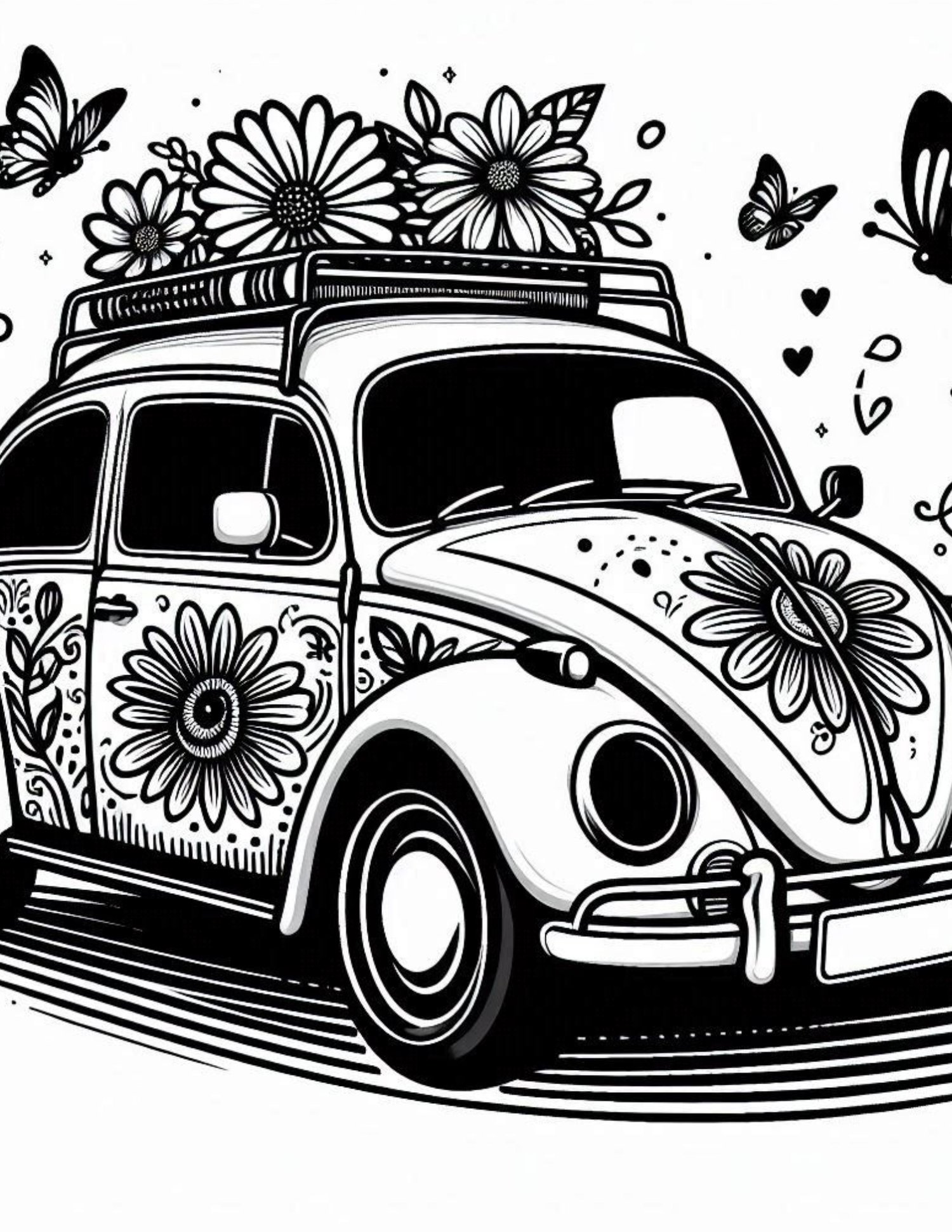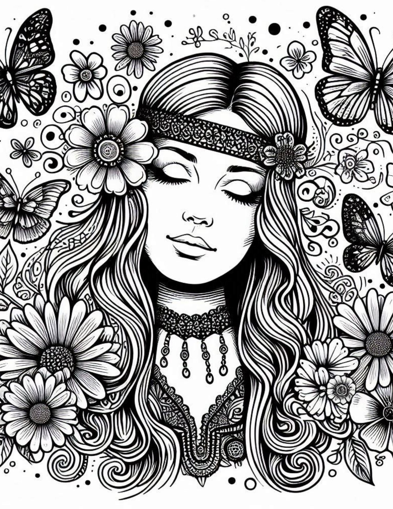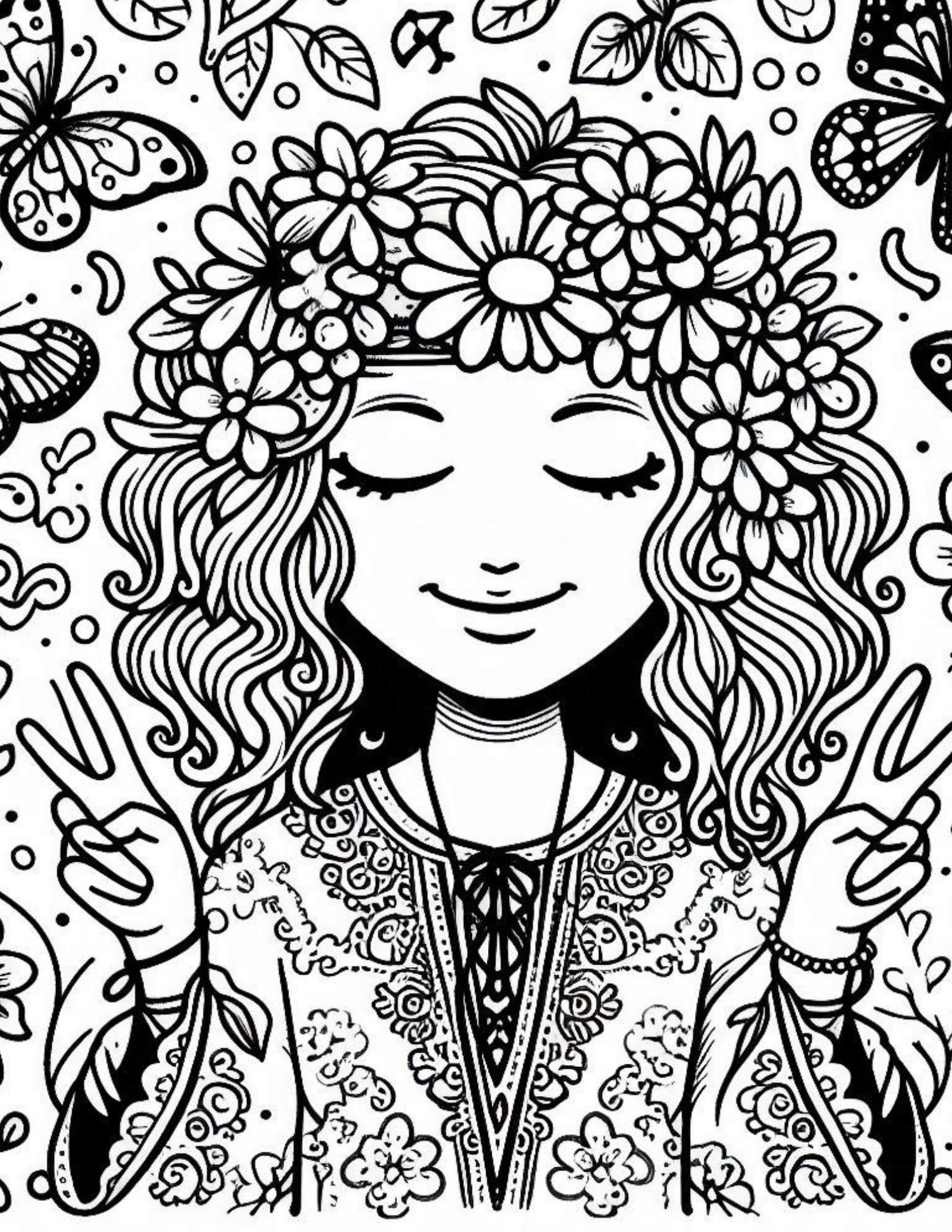 Hippie Chick Coloring Book 8 Pages Digital Downloads Printable sizes 8.5 " x 11" paper size. JPG files available to print high quality coloring pages. Enjoy!!