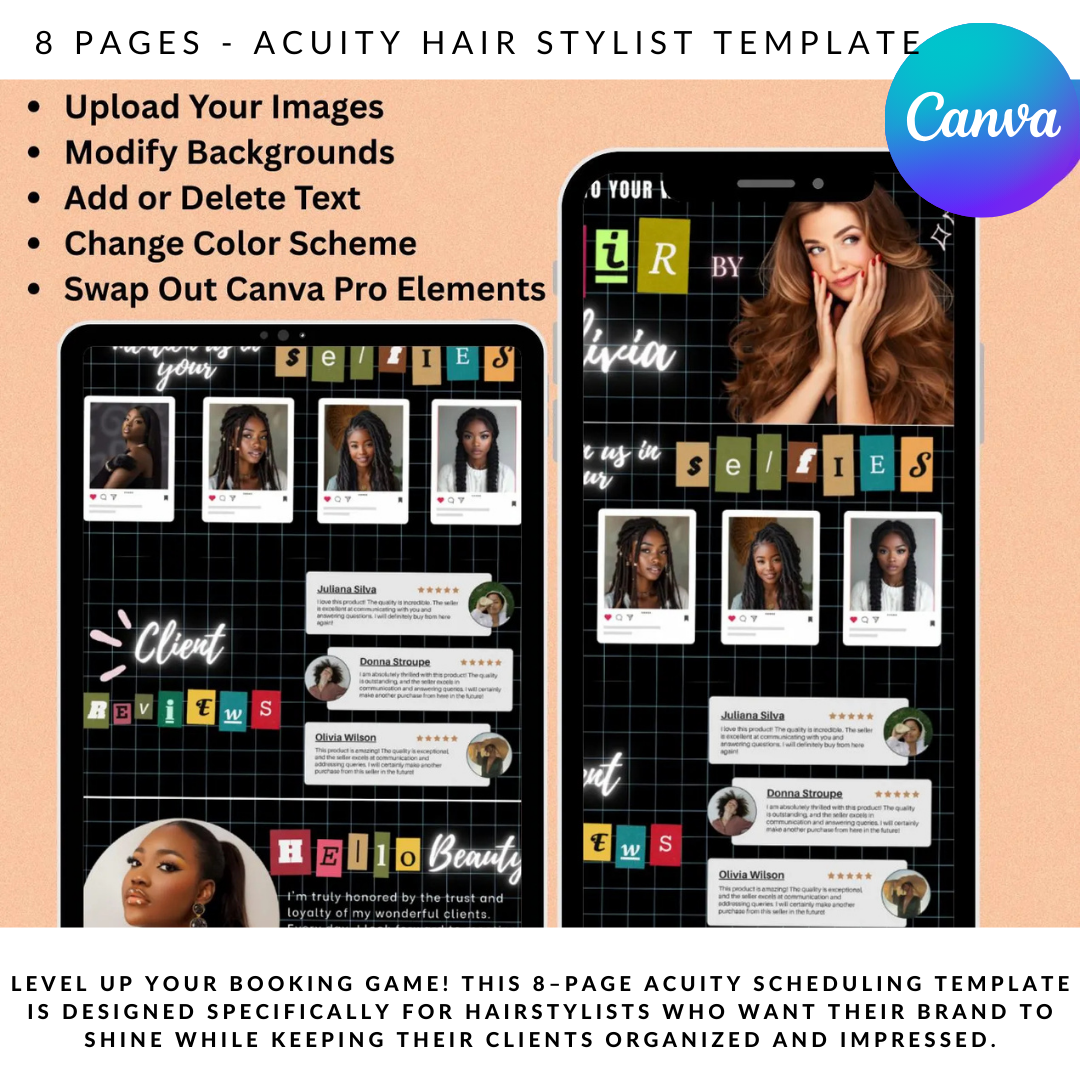 ✔ 8 fully editable Canva pages tailored for hairstylists