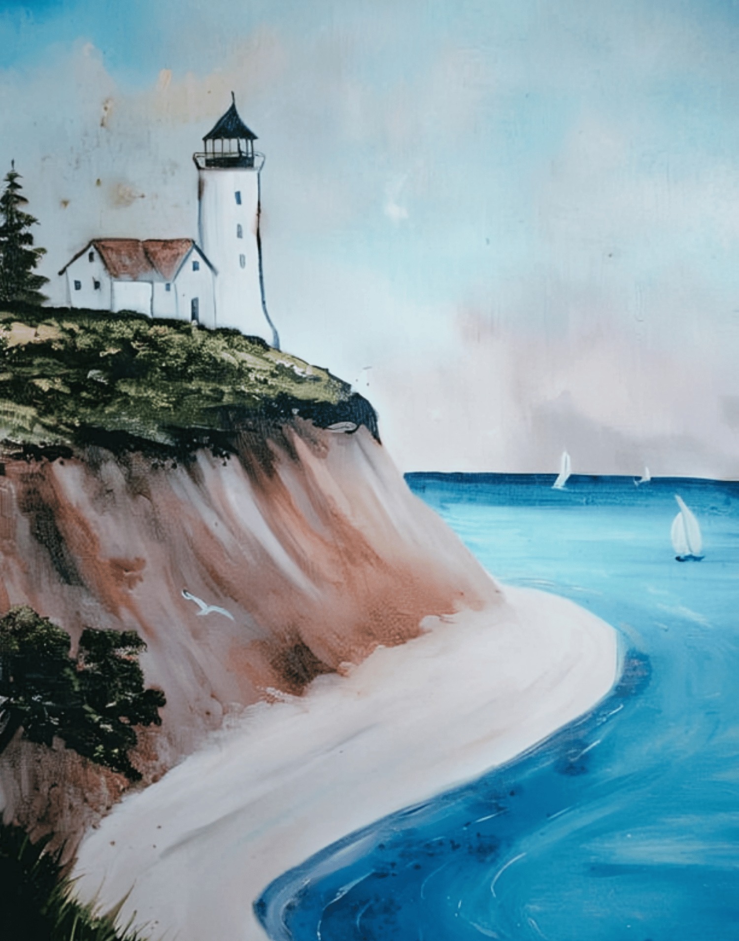 Lighthouse, Boat Sailing, Vintage Sea Shore, Top Art, Sea Scene, Best Sea, Nostalgic Maritime, Rustic Sea, Painting, Wall Art, Digital Art.