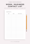 Work / Business Contact List Printable & Fillable Template, A4/Letter Size