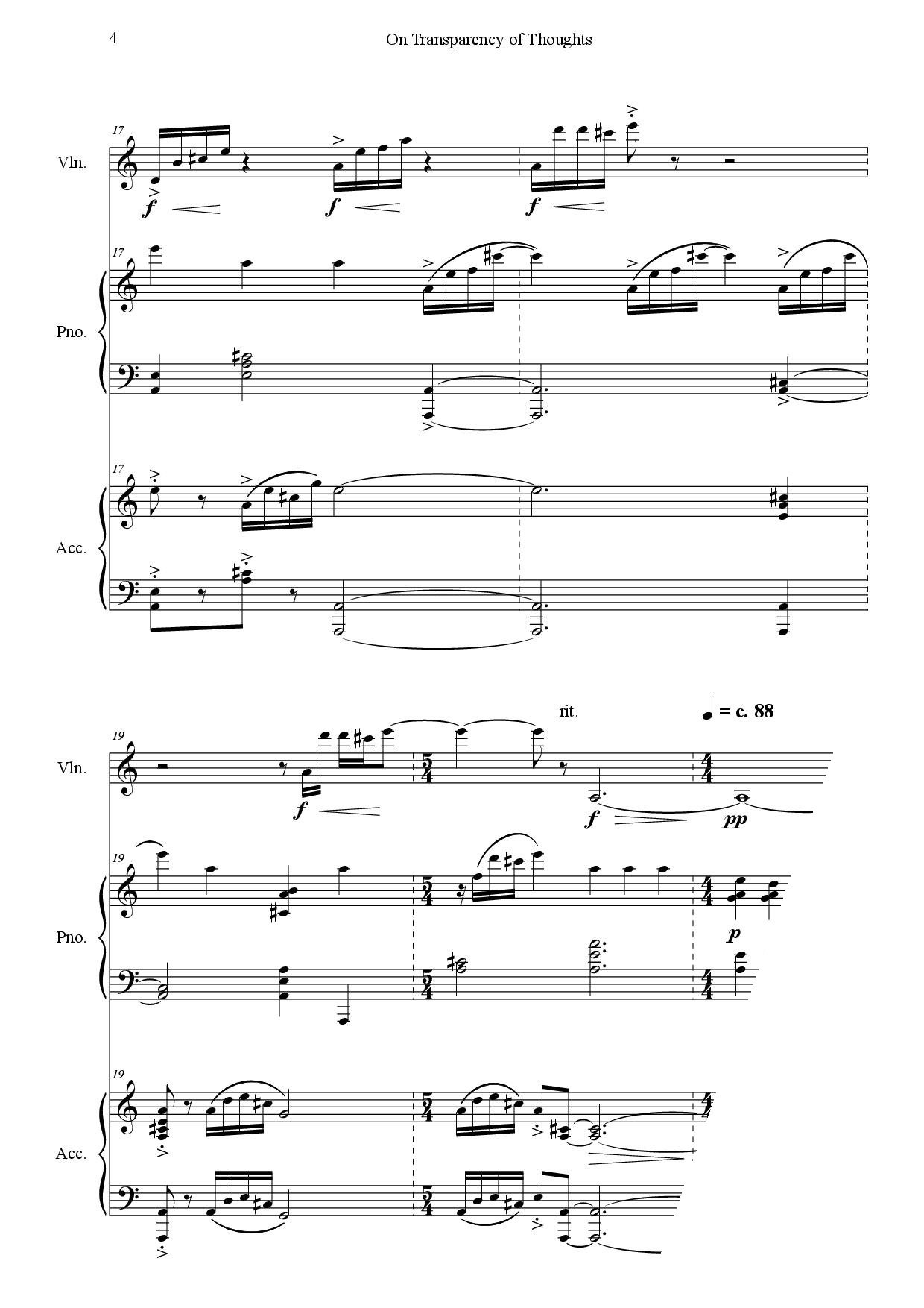 Peter Machajdík: ON TRANSPARENCY OF THOUGHTS for violin, accordion and piano (Digital Sheet Music) [score and parts]