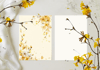 A soft watercolor yellow floral wedding invitation suite featuring delicate blossoms and airy botanical accents.