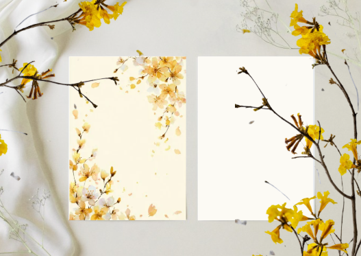 All pieces are double‑sided, with the back printed in the same matching watercolor tone — never plain white — for a cohesive, premium finish.