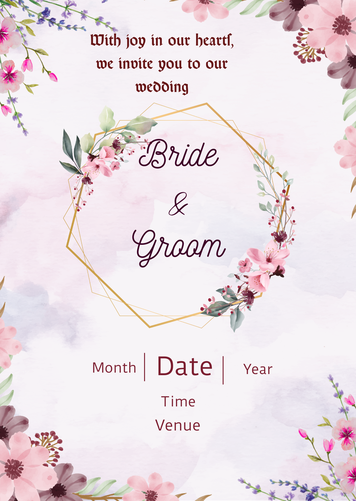 Easily customize names, date, time, and venue in Canva (free or Pro) β no design skills required! Download your invitation instantly as PDF, JPG, or PNG and print at home, at a local shop, or share digitally with friends and family.