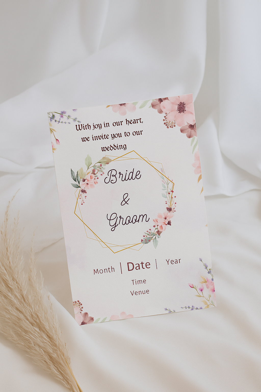 Celebrate your big day in style with this editable Canva wedding invitation template. Designed with romantic watercolor florals and a modern geometric frame, this invitation is perfect for couples looking for a blend of elegance and creativity.