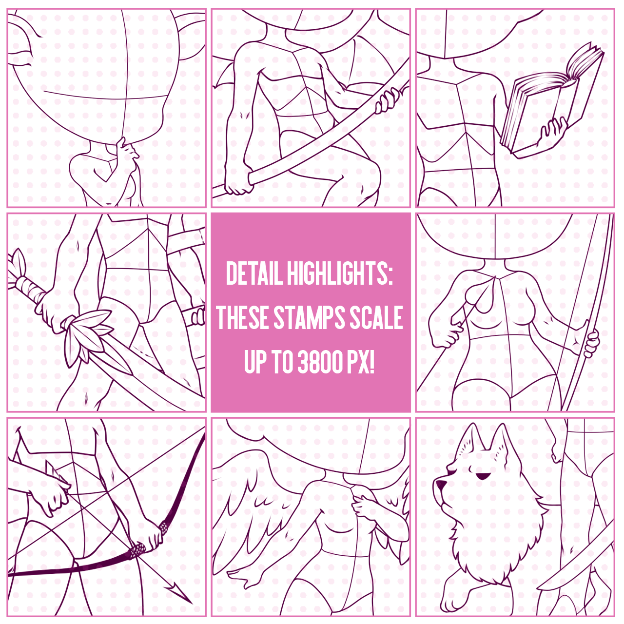 If you are into sweet chibi angels and cute chibi demons, I highly recommend taking a look at this pose set for Procreate! :D While this 30-pose stamp set is a bit more inclined to the demons and angels theme than my other fantasy packs, it also offers a bunch of other fantasy character templates, including elves, warriors, and hooved cuties. With insanely precise linework and high resolution, these poses are not only reliable figure references, but also great time savers for commercial work!