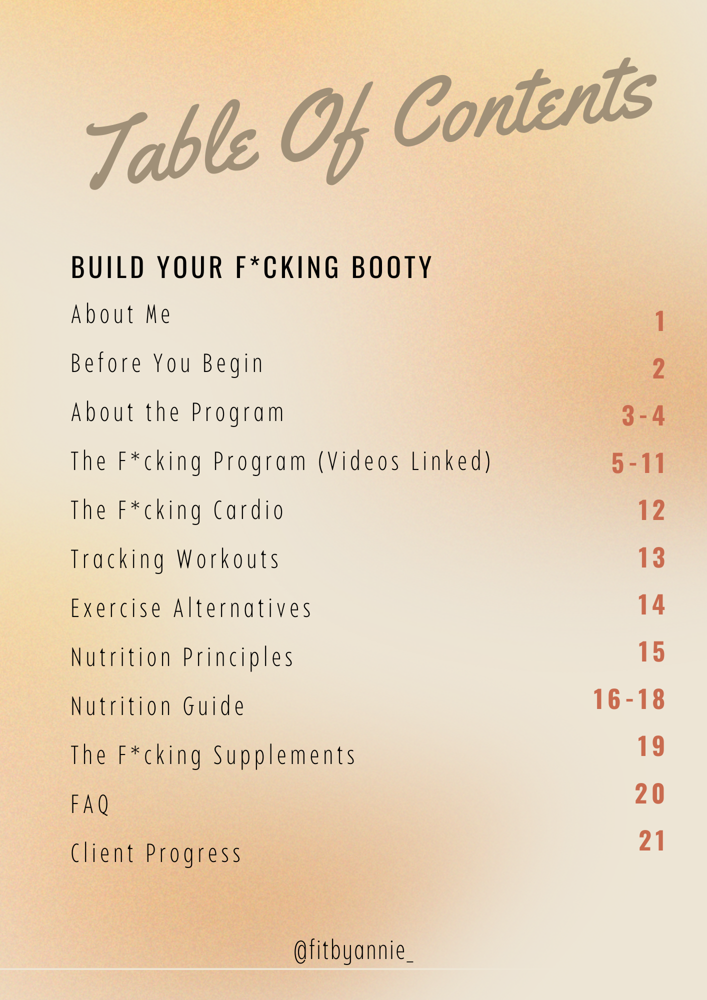 - A macro nutrition guide so that you know what your macros are in order to build that hourglass figure!