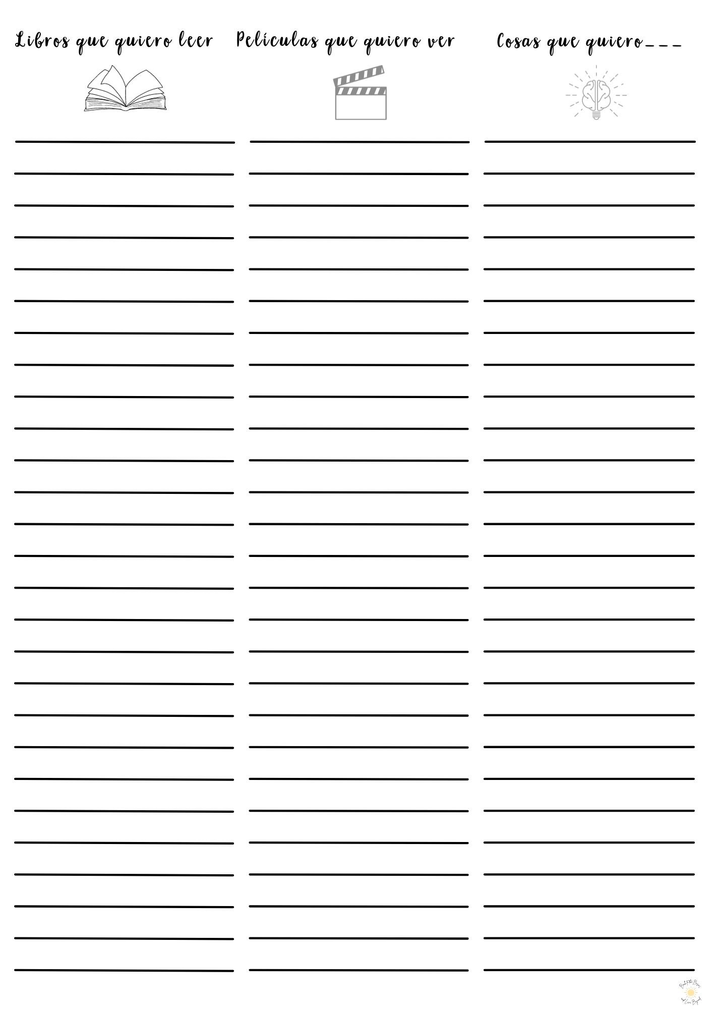 1 Página de Listas de Libros que quiero leer, Películas que quiero ver, Cosas que quiero ___
