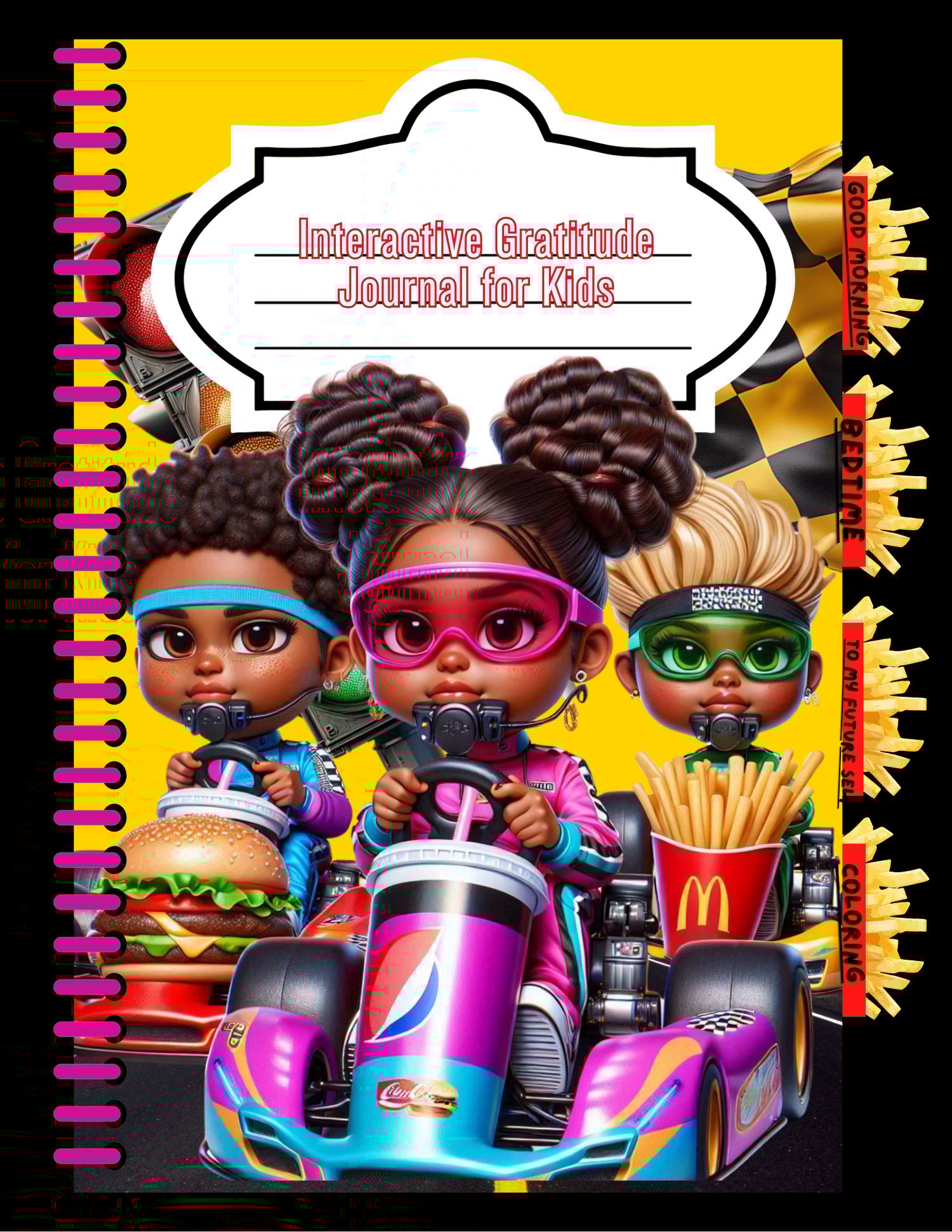 Get ready to race into a world of positivity and fun! This Interactive Gratitude Journal for Kids is designed to help little ones develop a daily habit of gratitude, reflection, and mindfulness—without ever getting bored. Packed with colorful illustrations, cool kid racers, and interactive sections like “Good Morning,”