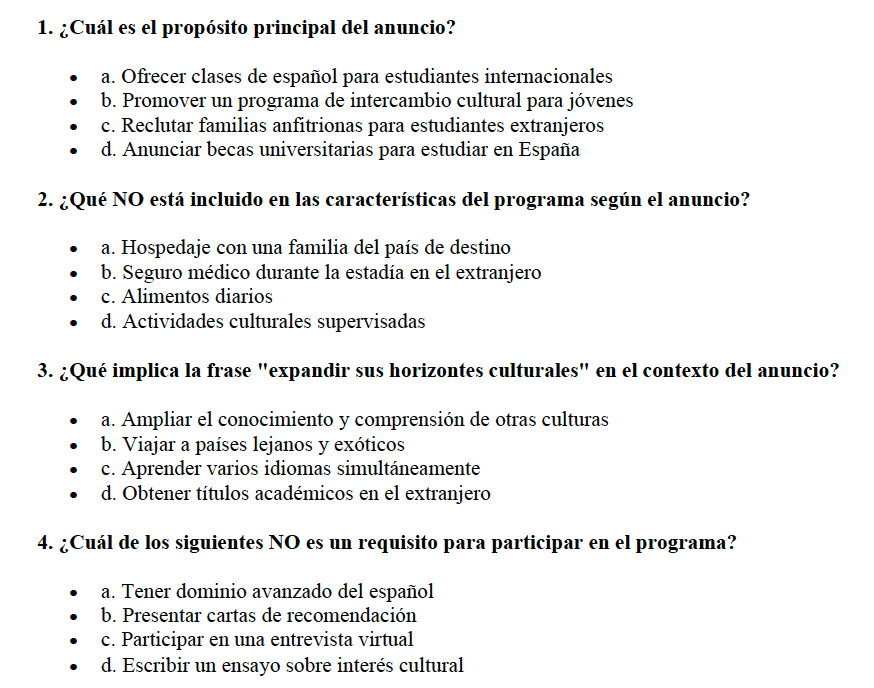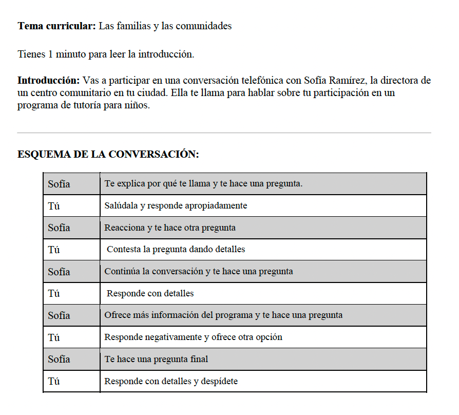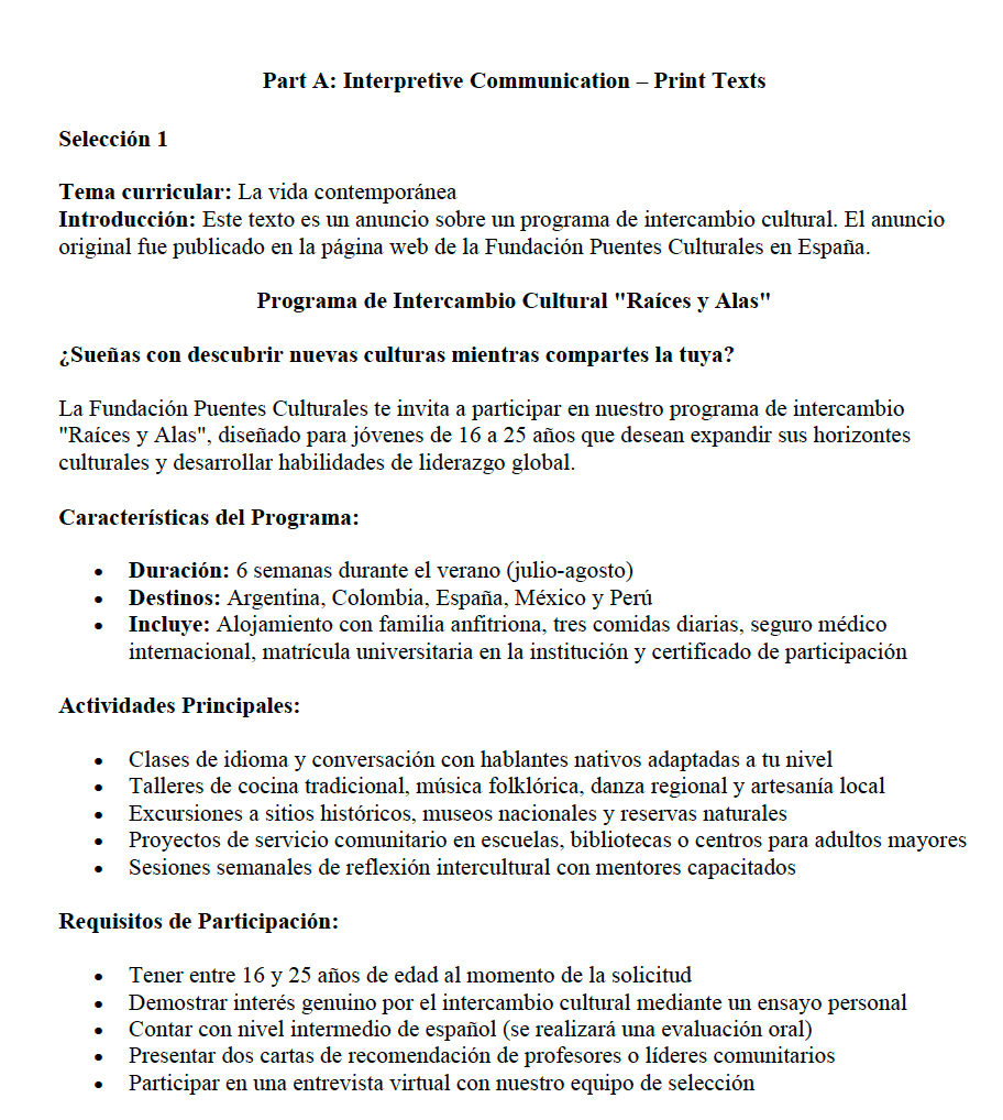 - Four "Free Response Questions" (email, essay, conversation, presentation)