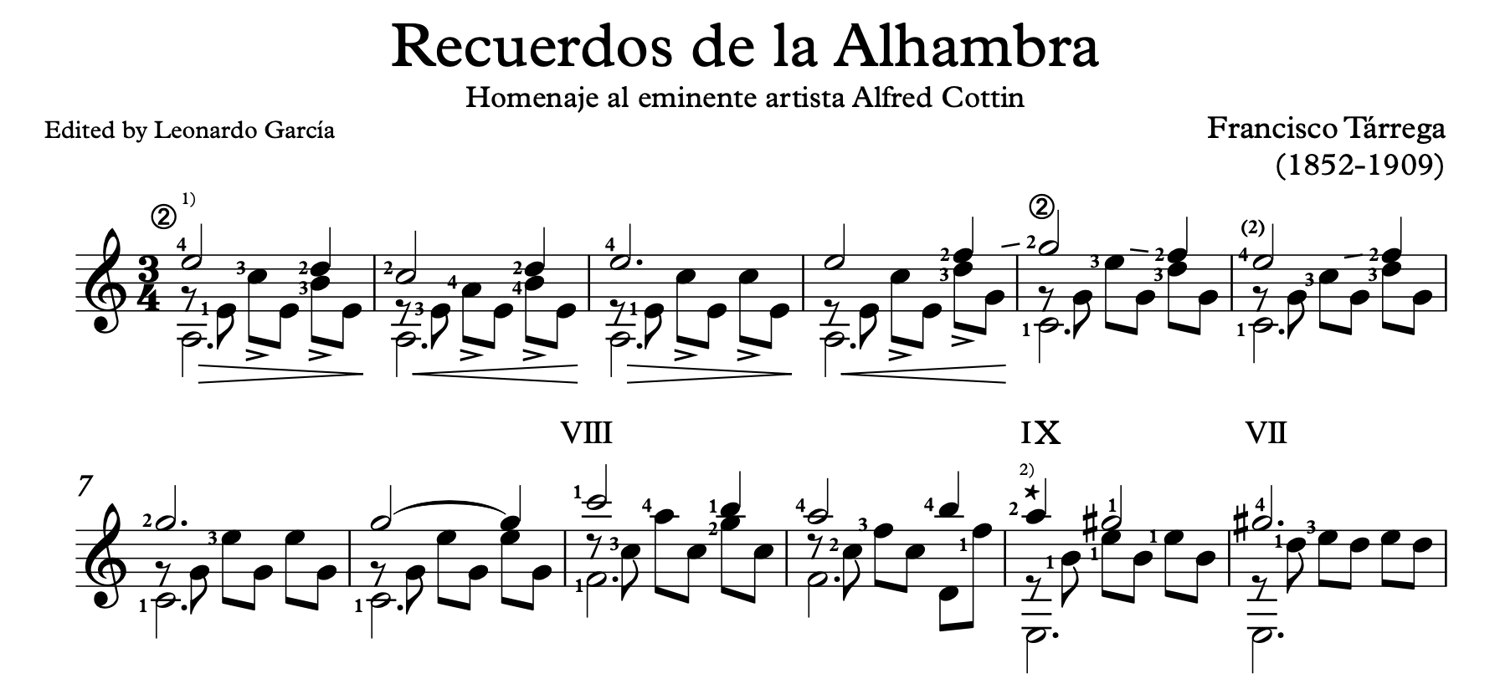 Francisco Tarrega Recuerdos de la Alhambra Study Score
