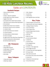 The document provides 100 recipes for kids' lunchboxes. It includes recipes for sandwiches, idlis/paniyarams, dosas/uttapams, rice/pulau, poori/roti/parathas, tikkis/patties, pasta/macaroni, muffins/pancakes, and rolls/wraps. Each recipe includes a list of ingredients and instructions on how to make the dish. The document was compiled from various Indian food blogs and aims to give parents variety in preparing healthy lunches for kids.