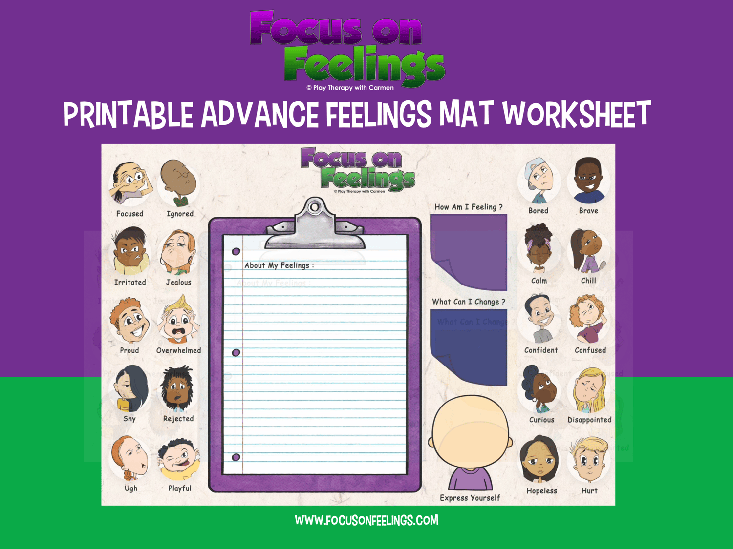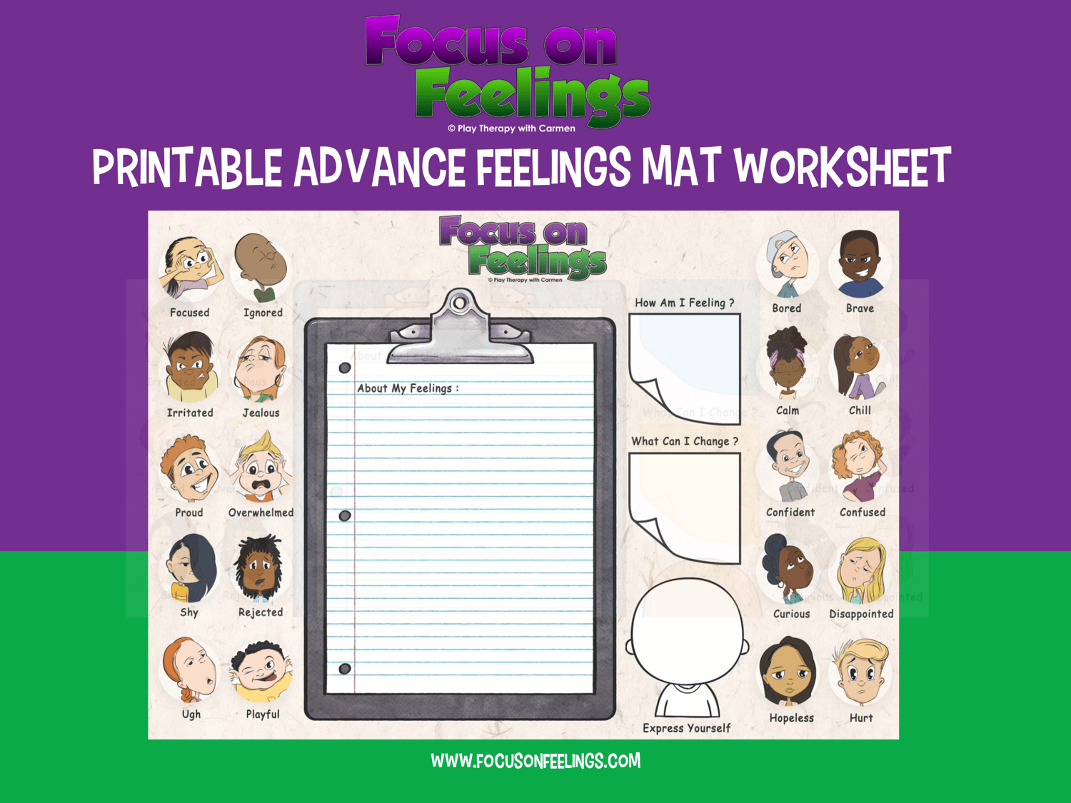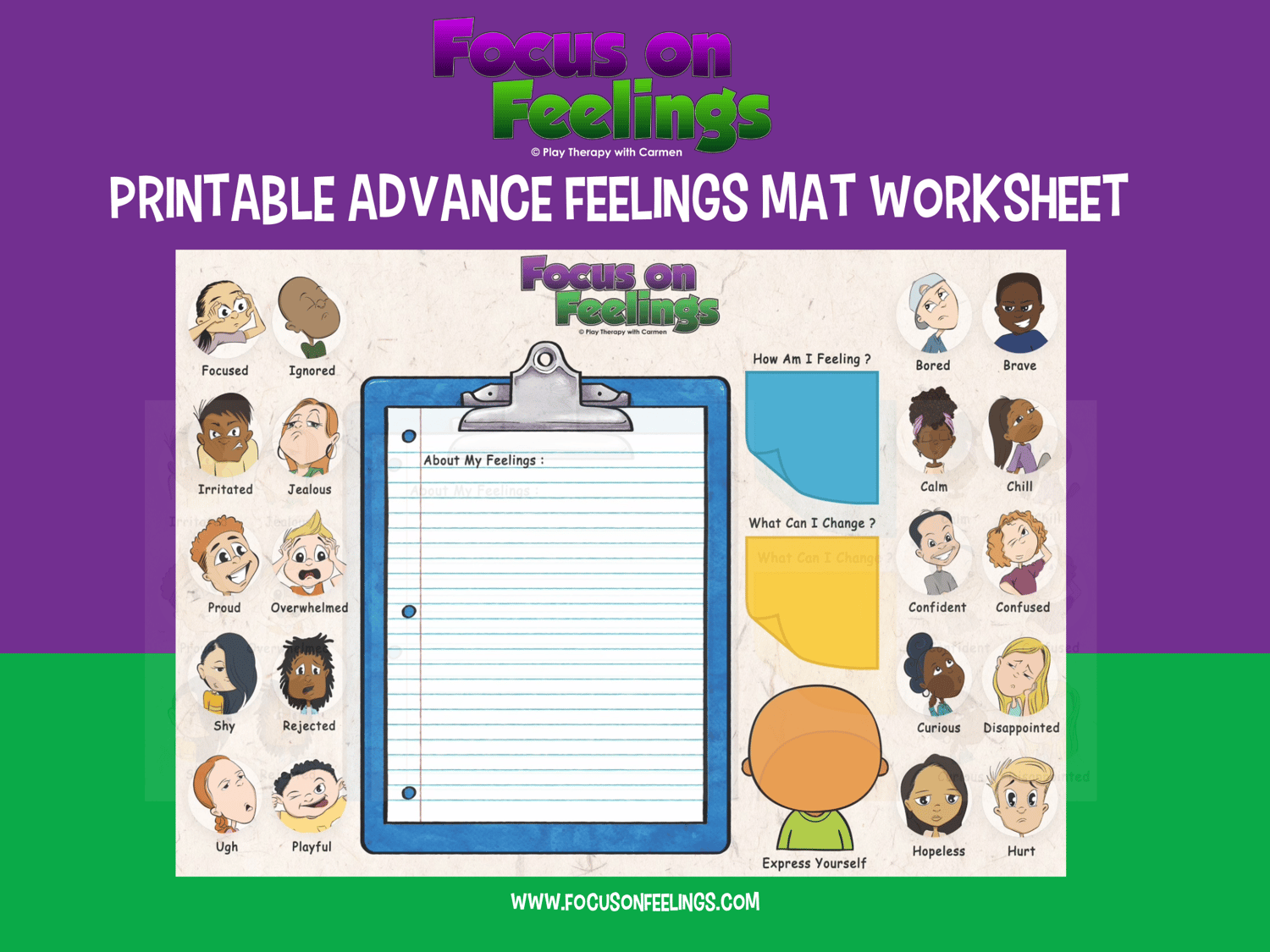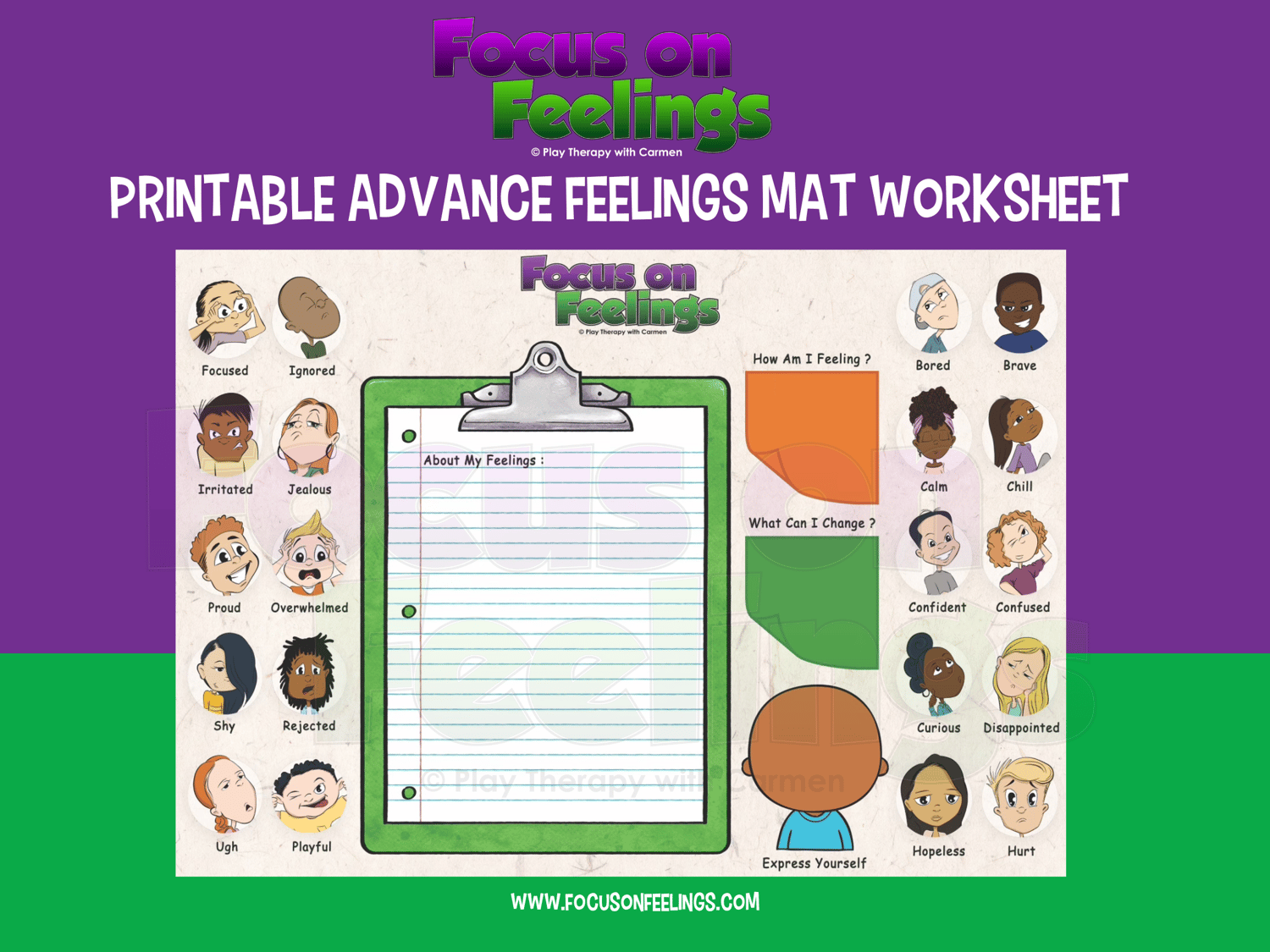 With the Focus on Feelings® Printable Advanced Feelings Mat Worksheets, a child can track these 20 advanced emotions: