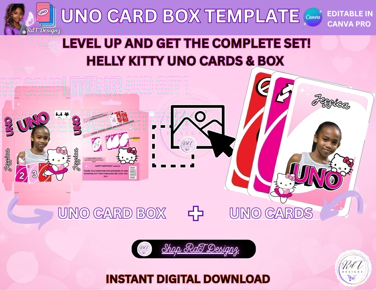 UNO Box Cover Template - Hello Kitty Edition (Editable in Canva)