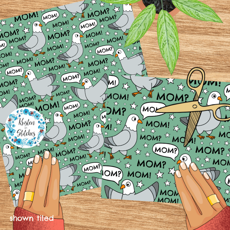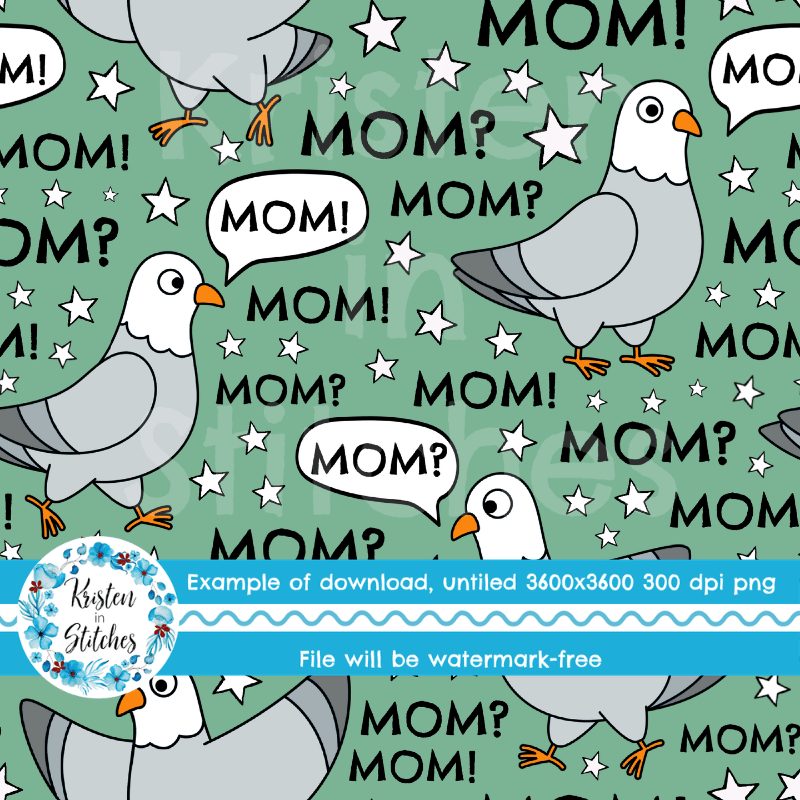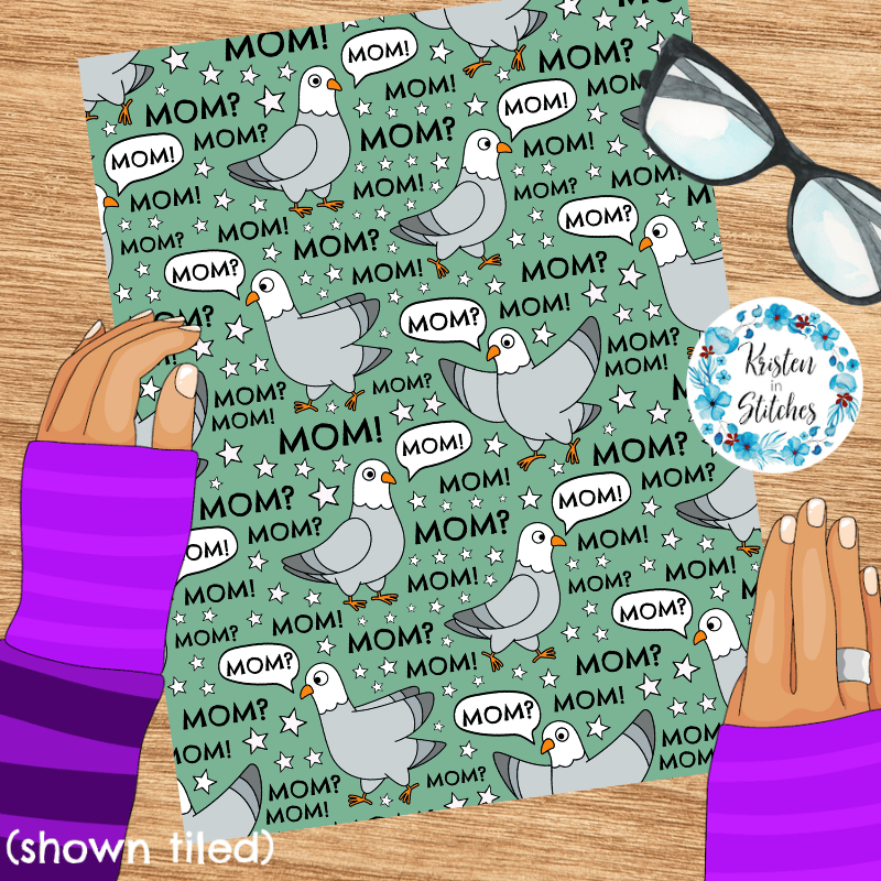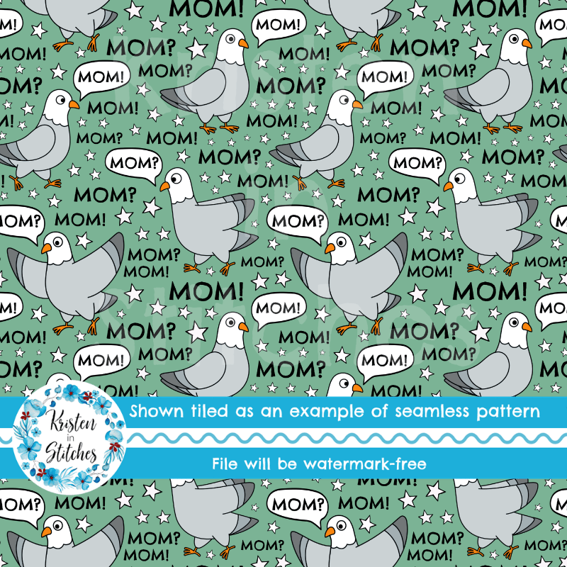 Mom! Mom! Funny Seagull Birds Seamless Pattern, Mother's Day