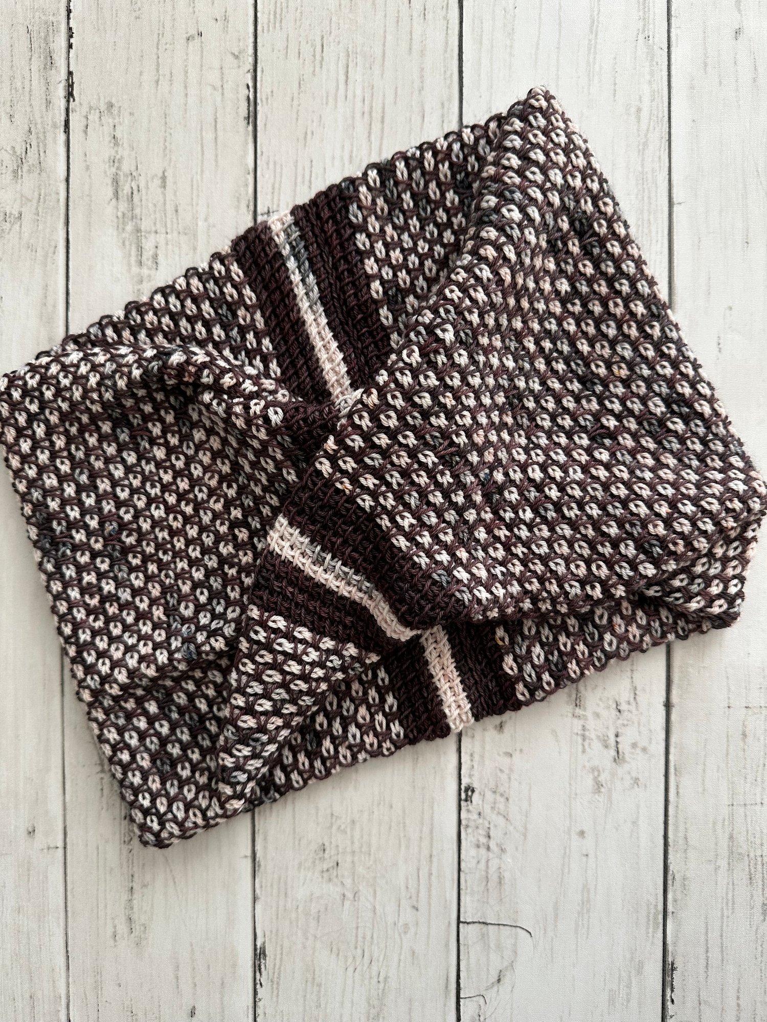 The Codex Cowl is a rhythmic, textural Tunisian crochet cowl worked seamlessly in the round. Designed to highlight both tonal and variegated yarns, making it a versatile, wearable staple for every season. With meditative stitching and a satisfying flow, Codex is the kind of project that invites “just one more round.”
