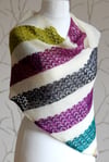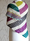 Turadh is Gaelic for ‘a break in the weather’ and that is exactly what the stripes in this shawl remind me of - a shining flash of colour through the clouds! Worked from one corner, this asymmetric shawl is great for showing off mini skeins or leftovers in a truly stunning way. The lace stripes feature a zigzag chevron pattern, which is echoed in the chevron striped border. Turadh is a great fun knit with plenty of relaxing bits!