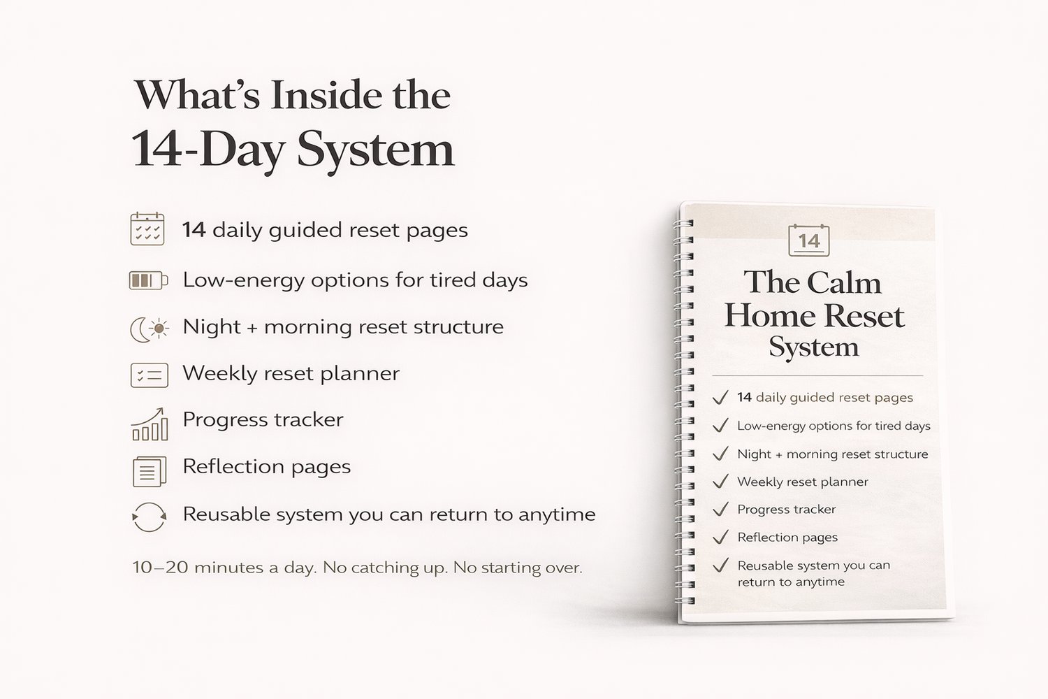 This 14-day reset gives you a clear, step-by-step structure to stabilize your home — without deep cleaning, restarting, or burning out.