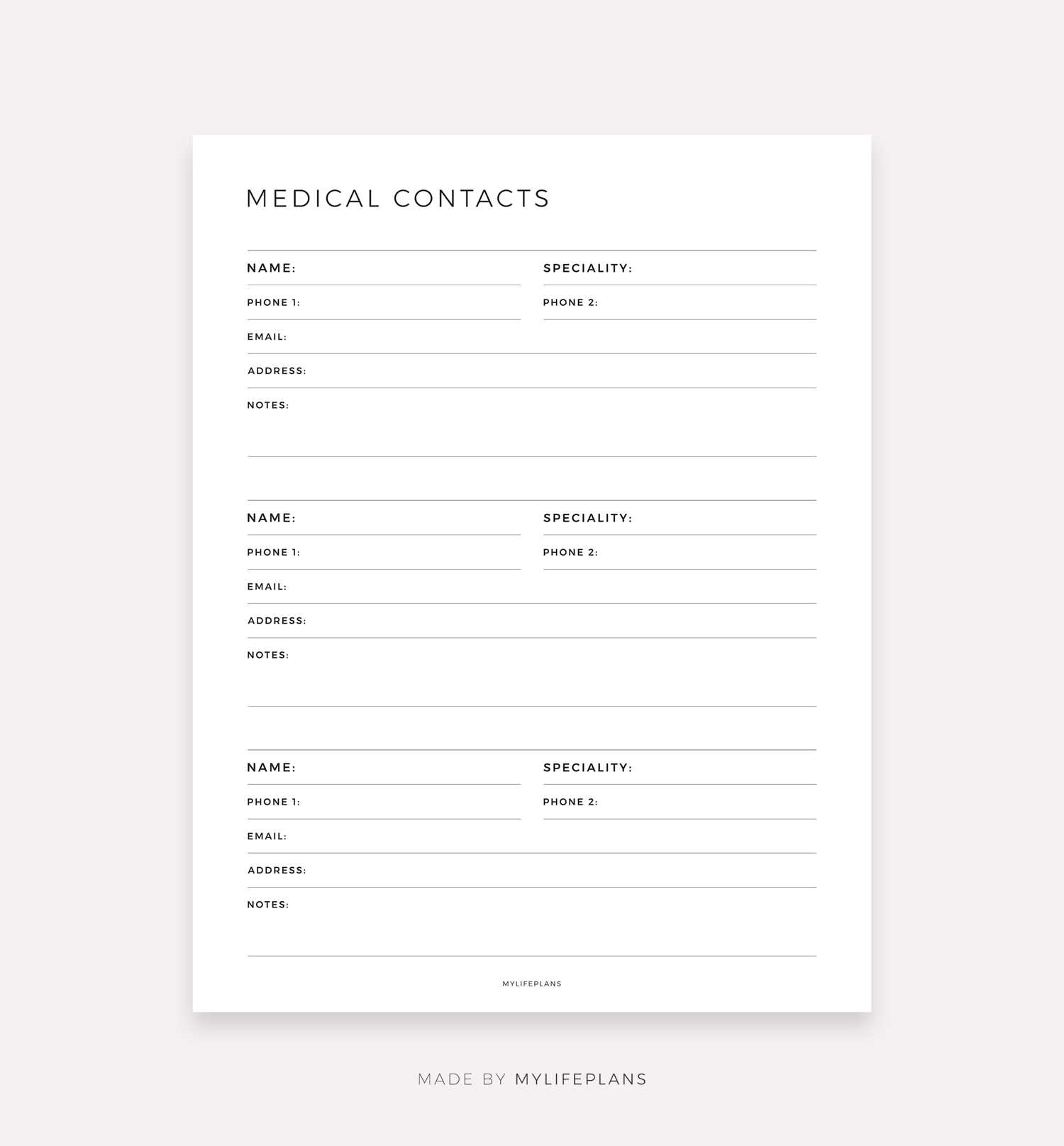 Digital Medical Contacts List Template, Compatible with Goodnotes, Notability, Ipad