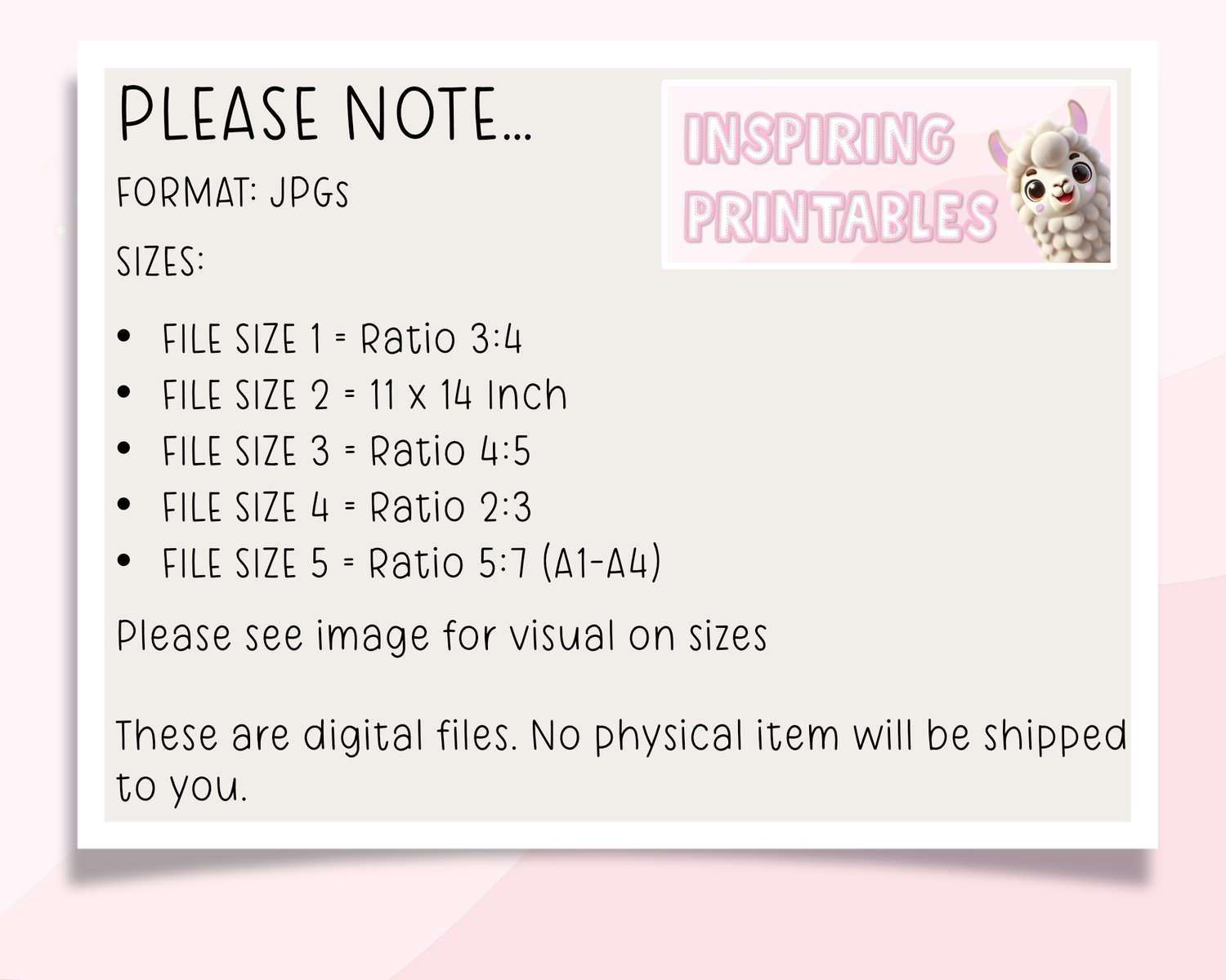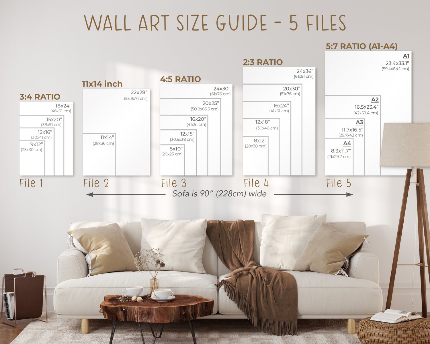 Choose from five different sizes to suit your space and preference. Please note that the files will be provided as a PDF document with a download link due to file size limits. Upon purchase, you will receive a PDF containing a link to access the files stored securely in the cloud. The following sizes are available: