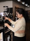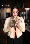 The soft and subtle colors for this cardigan remind us of terracotta walkways and the stucco houses that dot San Francisco’s streets. A panel of mosaic knitting is the perfect way to play with speckled skeins from The Black Squirrel.