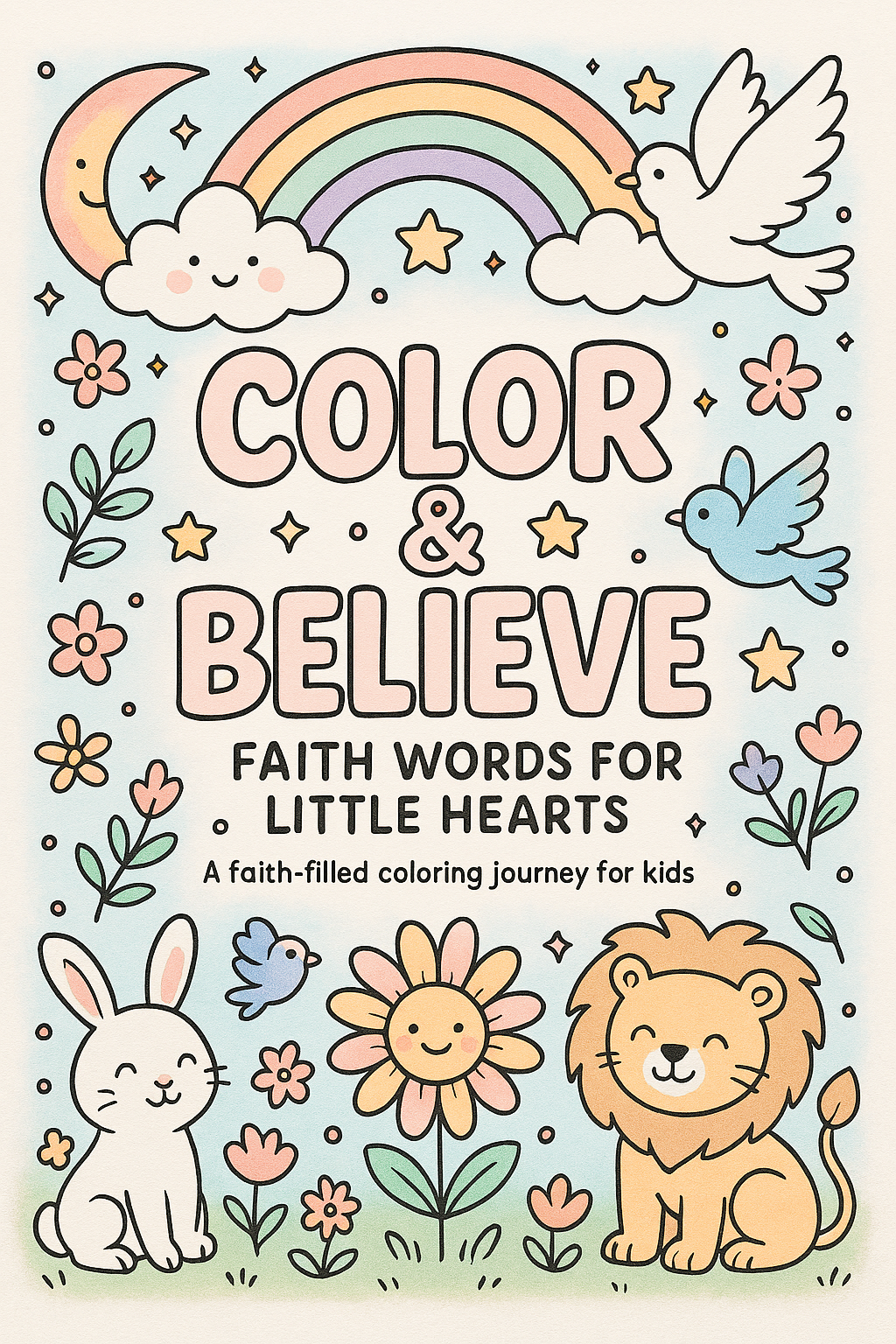 Bring joy and inspiration to your childโs day with Color & Believe: Faith Words for Little Hearts โ a heartwarming Christian coloring book designed just for kids.