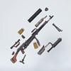 Includes a silencer, an optic a bipod, 2 stocks and some other addons.