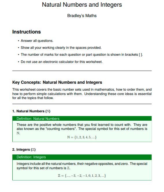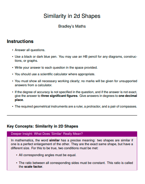 - Key Concepts: The opening section of the worksheet tells you what the worksheet contains and how to answer the questions with fully worked methods, deeper insights, pro-tips and how to avoid the typical student errors.