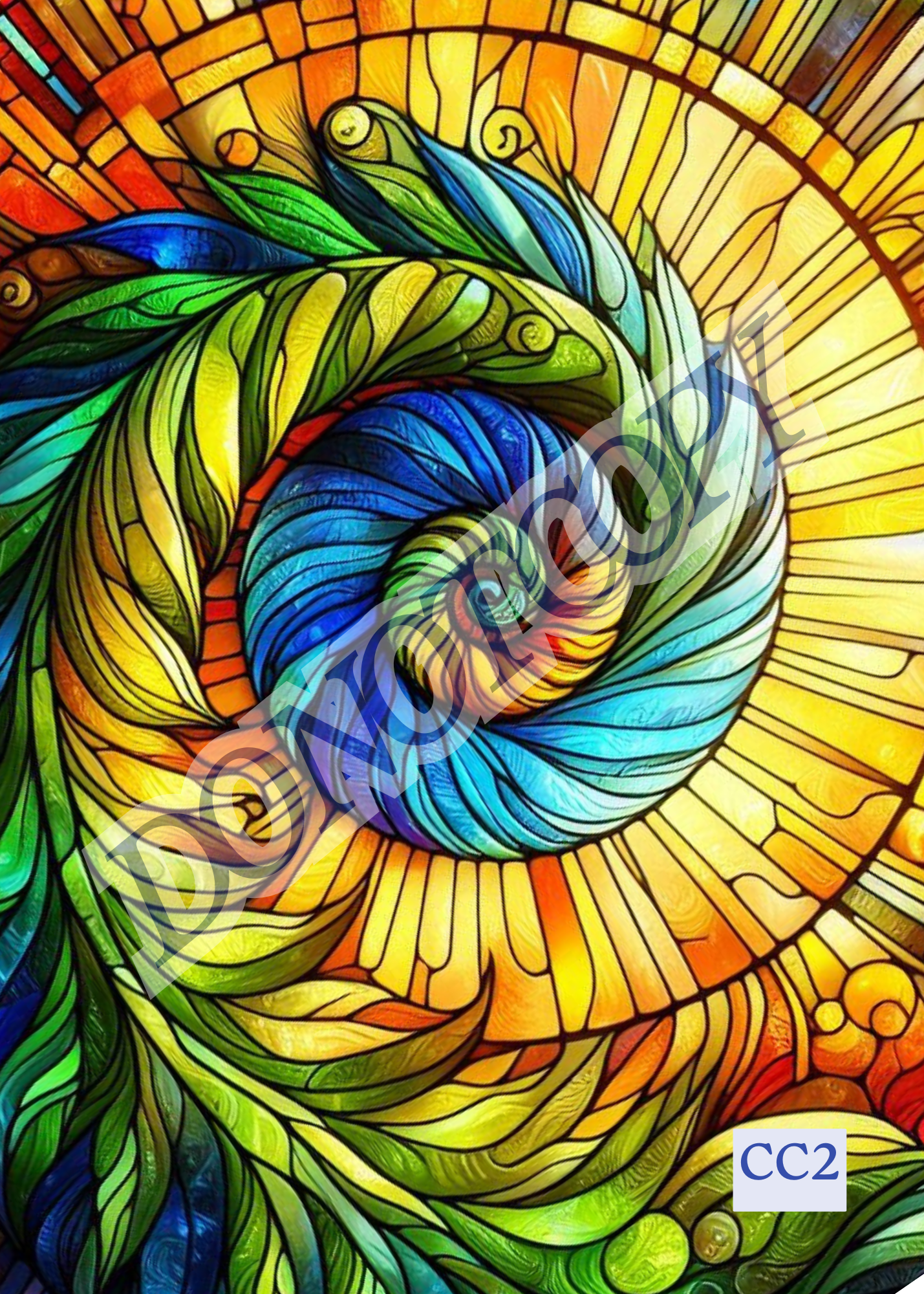 Capturing the essence of growth, renewal, and the vibrant energy found in nature, this bold stained-glass-style design features a stylized fern frond gently unfurling in a spiral, symbolizing new beginnings and the natural unfolding of life’s beauty.