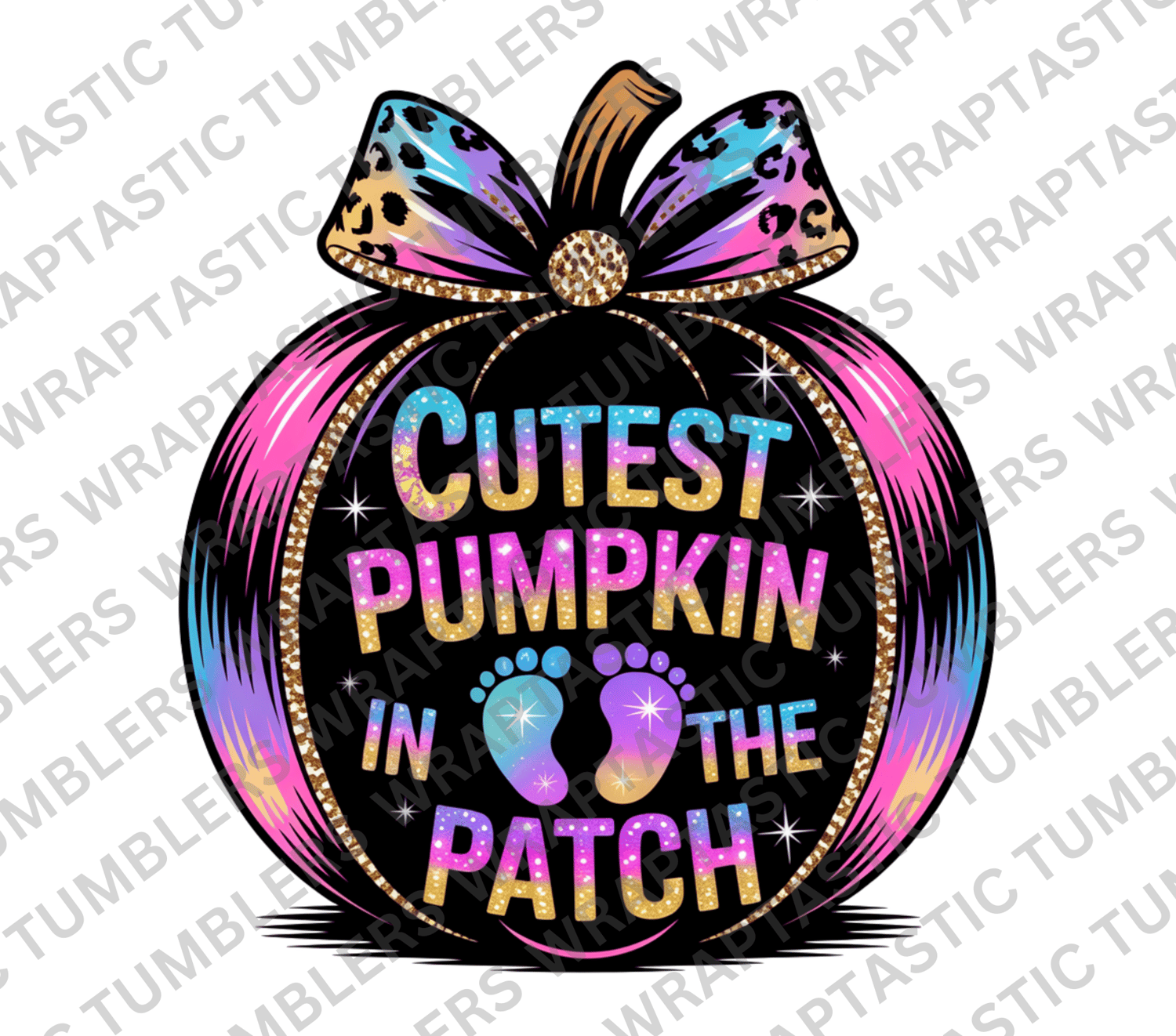 Cutest Pumpkin in the Patch Tumbler Wrap PNG Baby Shower Sublimation Design Cute Fall Shirt Mug Autumn Halloween Season Digital Download