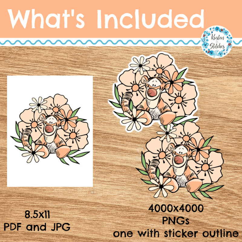 Tigger Printable PNG PDF Sticker or DTF Iron On Transfer Transparent File, DIY Print & Cut, Shirt Applique, Classic Winnie the Pooh