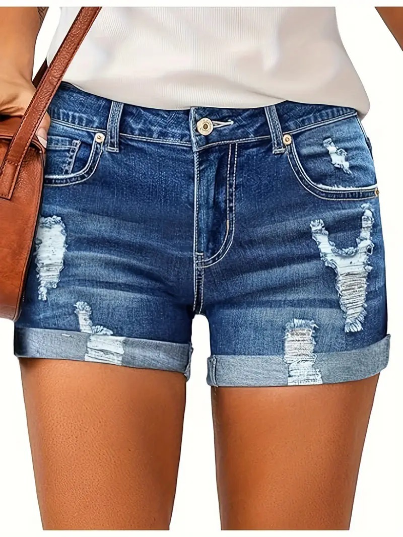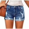 Elastic Hole Denim Shorts for Women, Casual High Waist Denim Shorts