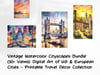 This premium collection features over 50 stunning digital prints of the world’s most famous cities and landmarks, rendered in a beautiful soft watercolor style with a vintage aesthetic. Each design captures the unique beauty and history of these urban landscapes.