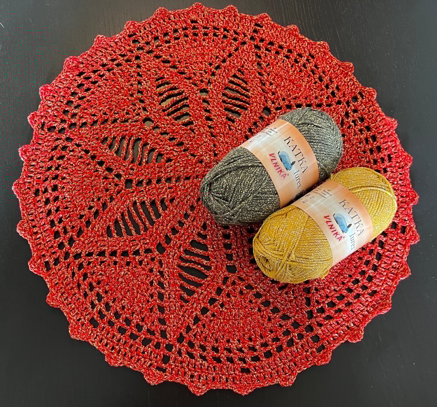 The magic lies in the chosen yarn: we used sparkling Katka Lurex, which, thanks to its lurex thread, gives the doily irresistible shine and festive flair. The deep Christmas red is, of course, ideal, but you can easily customize the table mat to your home by choosing from many other color shades. The great news is that only one ball of yarn will suffice for such a stylish home accessory!