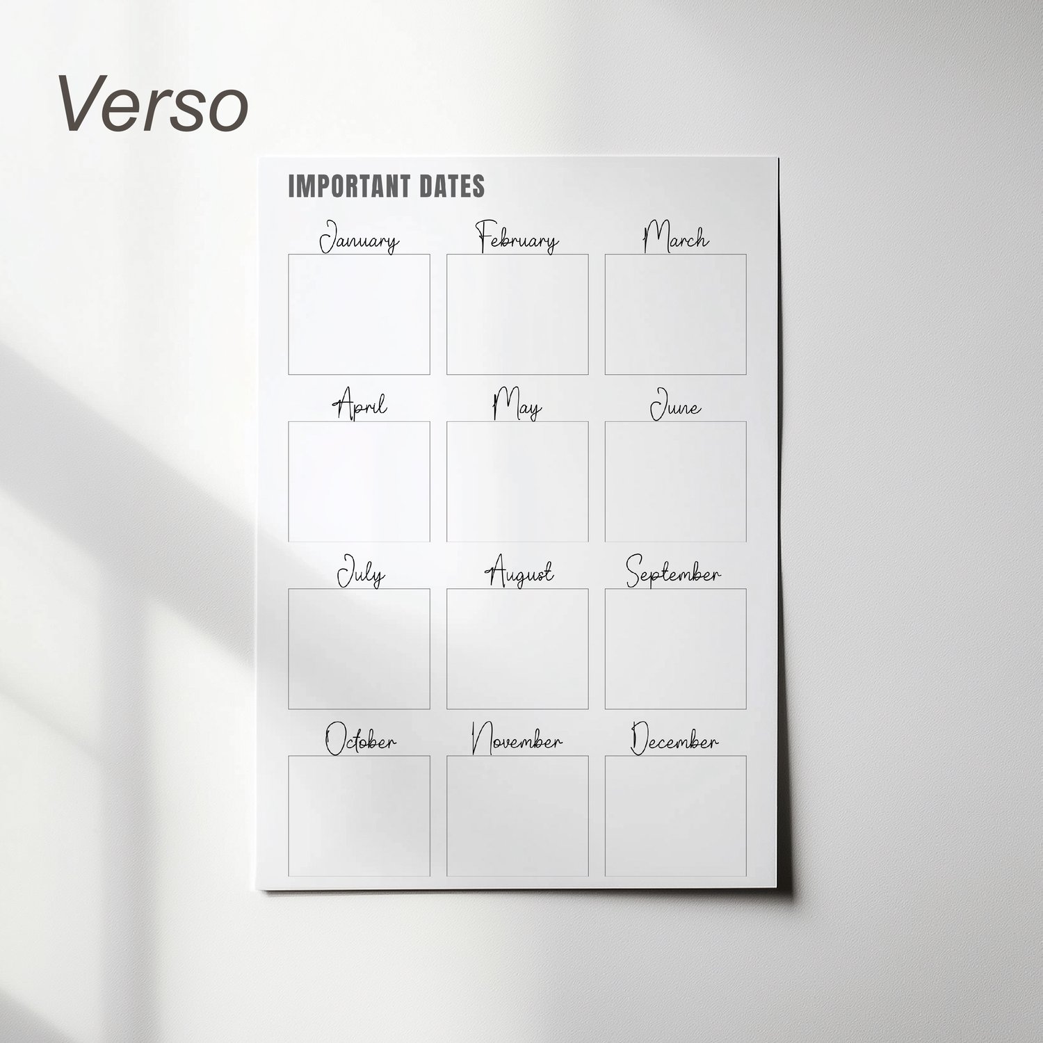 🖊️ Space for each month to note important dates, birthdays, appointments, or personal goals.