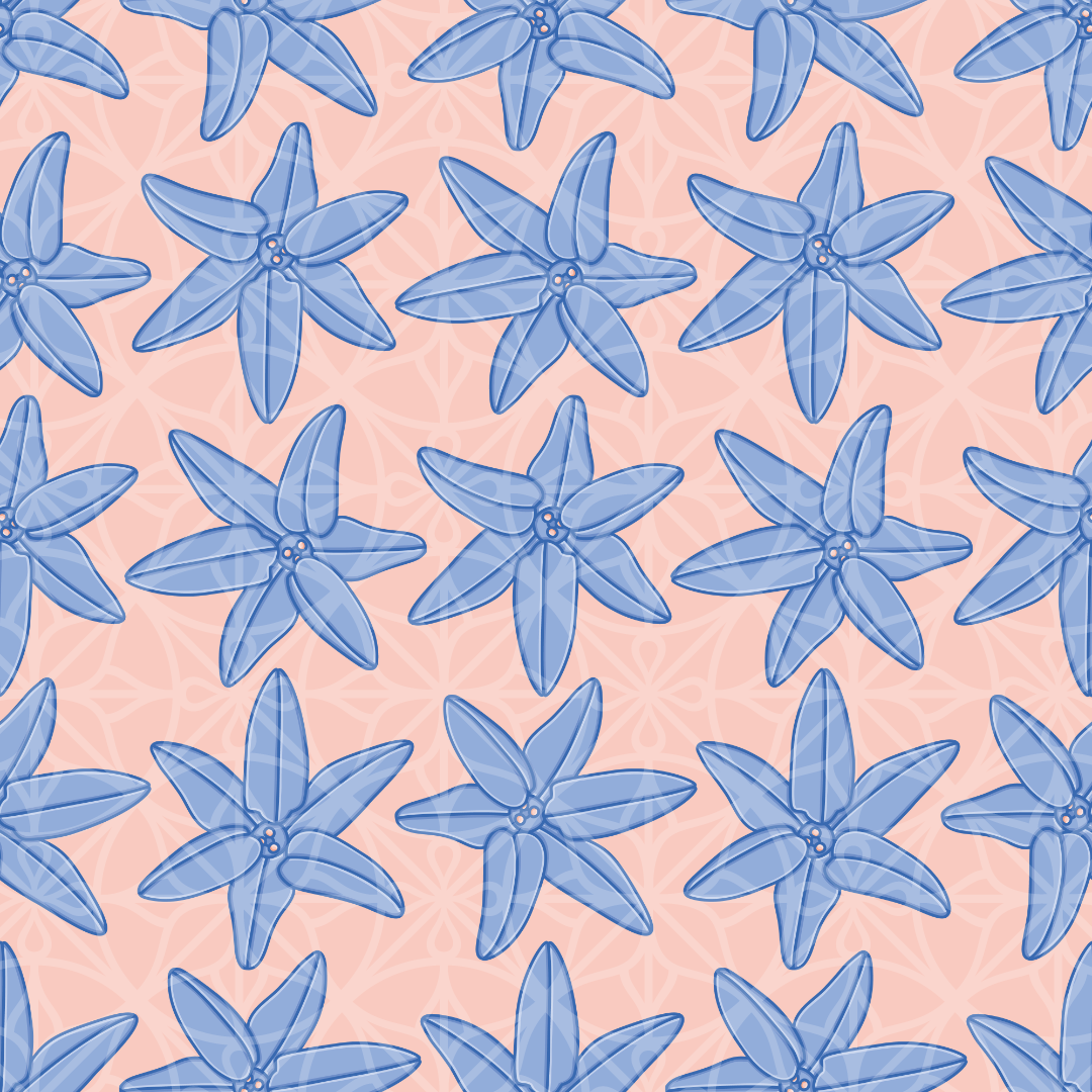 Blue star wildflower repeatable background. Six petal floral vector pattern illustration